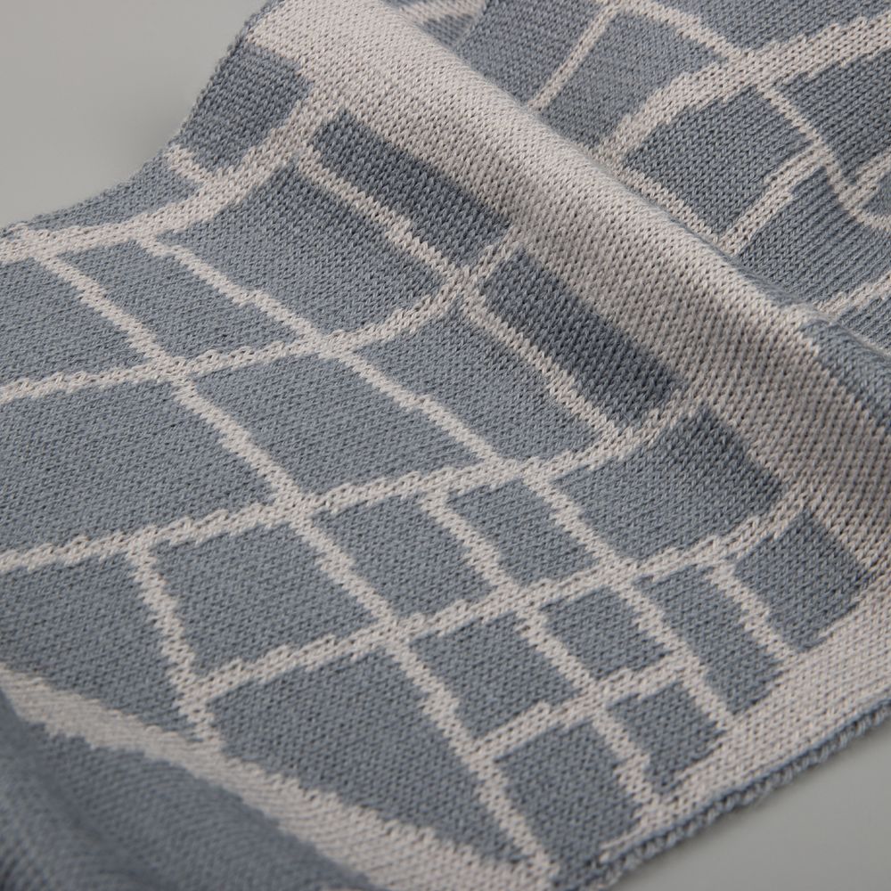 Шарф с вывязанным логотипом и индивидуальным рисунком в фирменной цветовой гамме.
