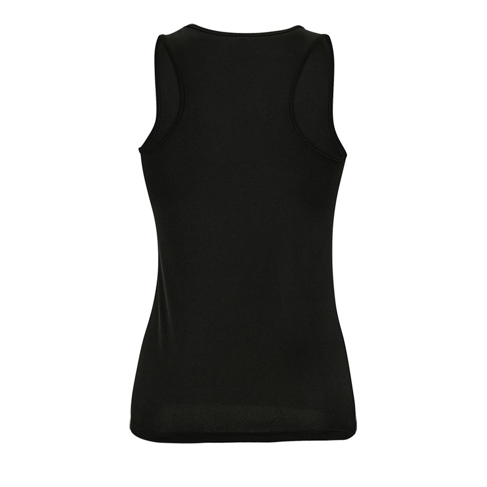 Майка приталенного кроя из спортивной сетки. Горловина и проймы обработаны бейкой.