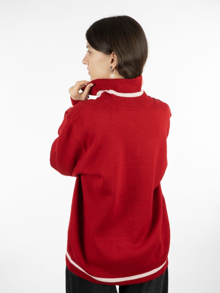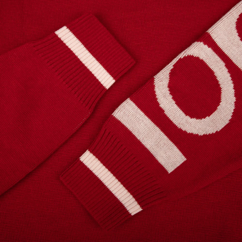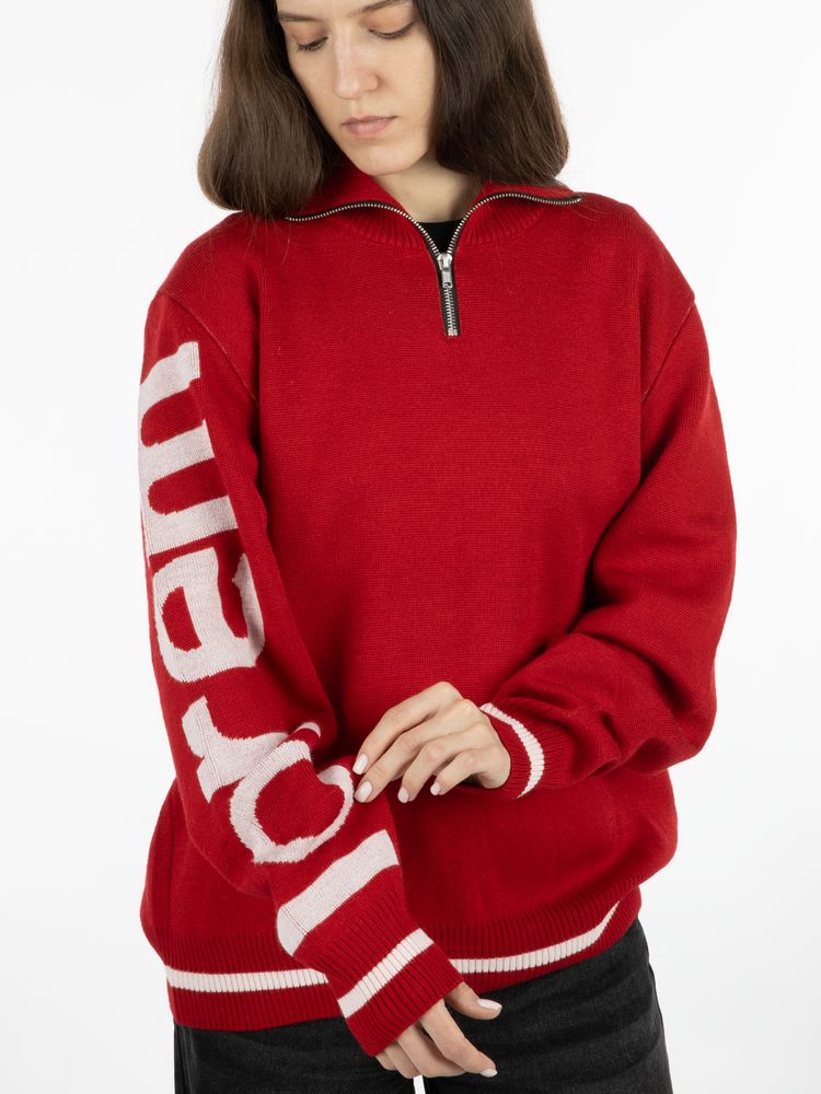 Олимпийка с вывязанным логотипом и индивидуальным рисунком в фирменной цветовой гамме.