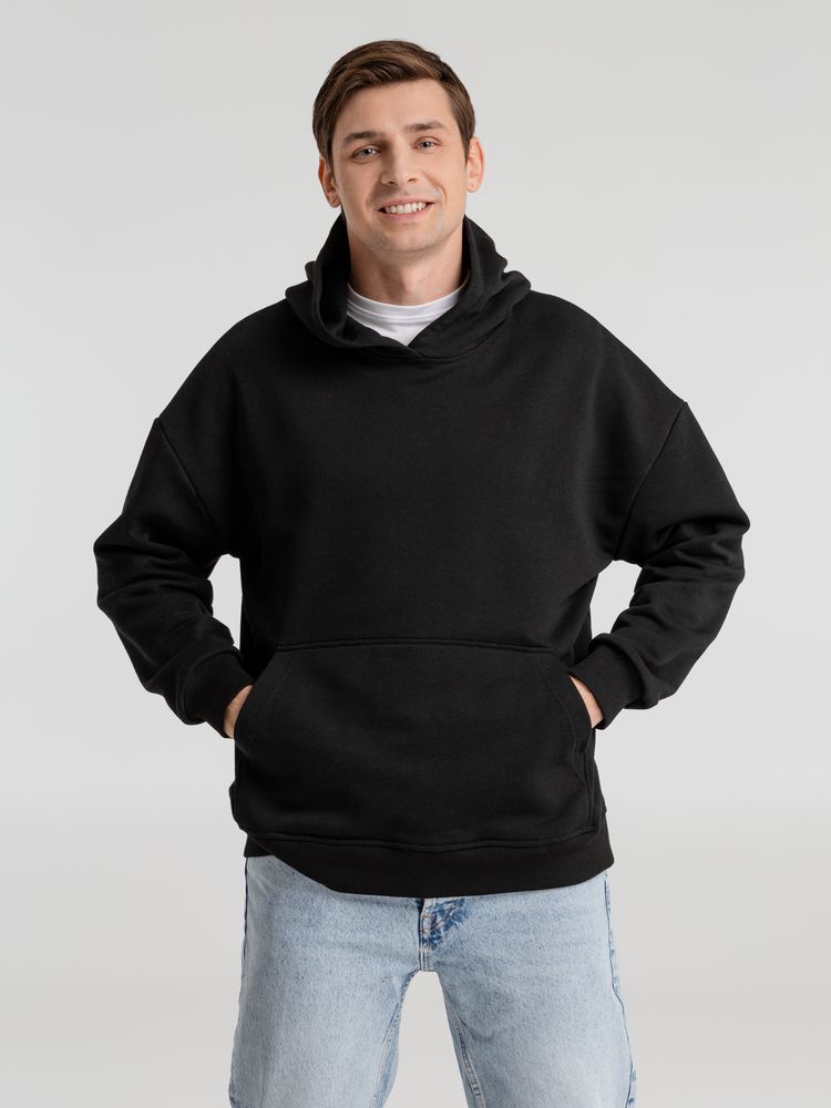 Худи оверсайз унисекс со спущенным плечом и карманом-кенгуру.