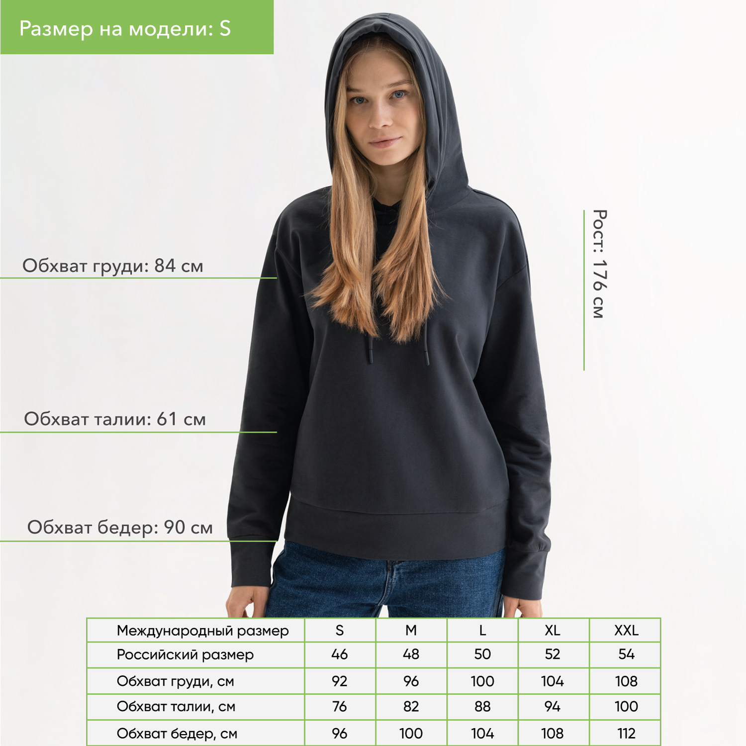 –Худи с капюшоном, унисекс ALEX антрацит, размер XXL