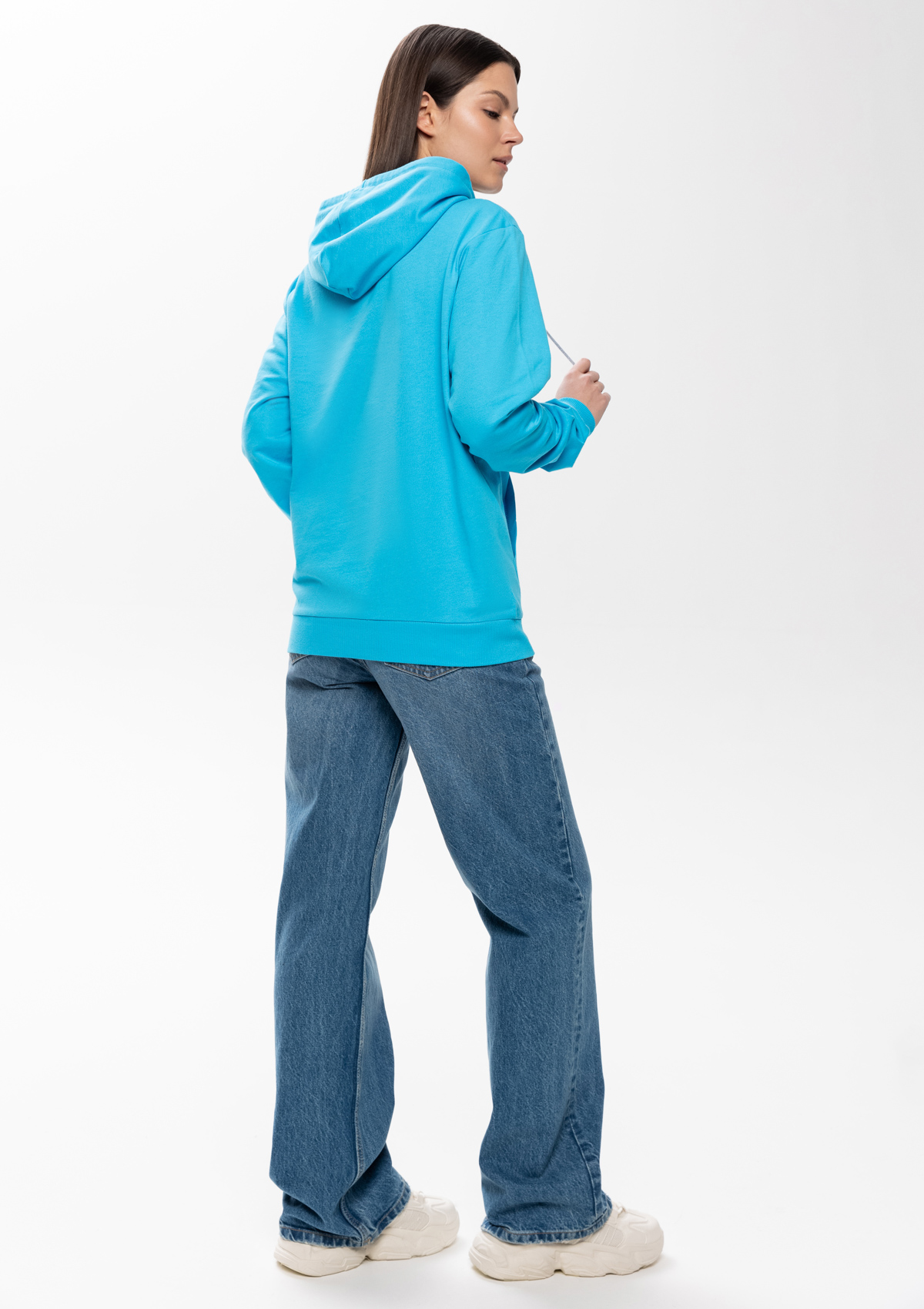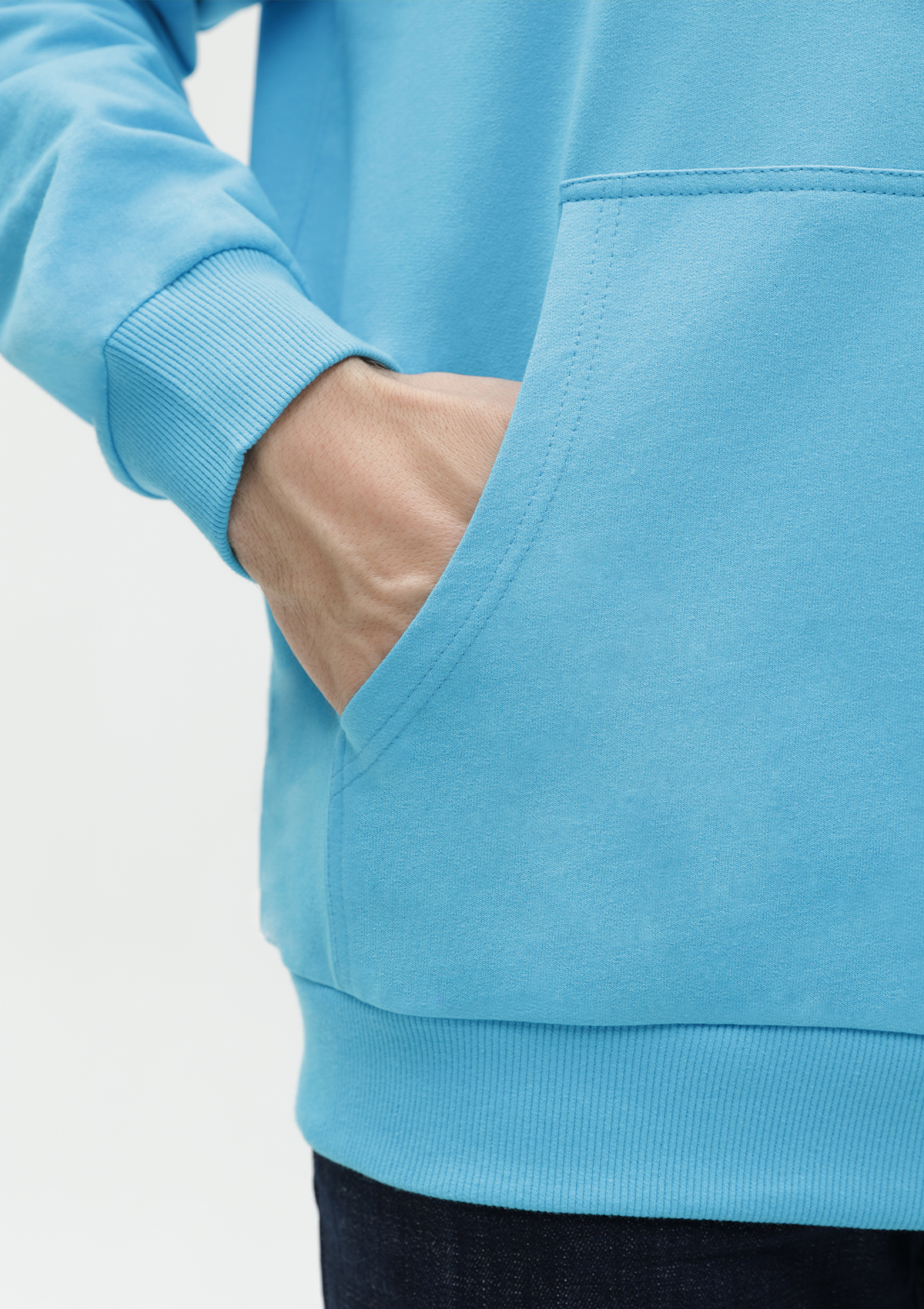 Толстовка без начеса выполнена из мягкого футера (100% хлопок), подклад – кулирная гладь (100% хлопок). Оба материала устойчивы к механическому воздействию и вытяжению, практически не поддаются пилингу.