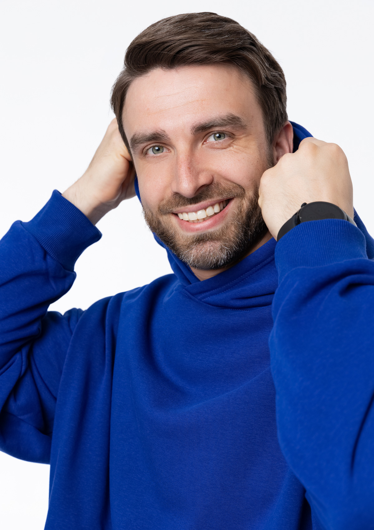 Размер мужского худи: XL/52. Параметры модели: рост 190 см.; обхват груди 108 см.; обхват талии 87 см.; обхват бедер 104 см.