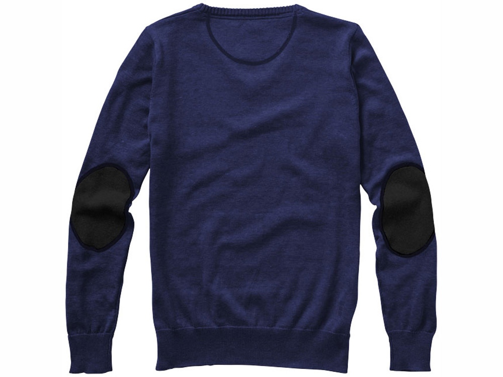 Женский пуловер Spruce с V-образным вырезом. Стандартный покрой. Резинка 1х1 на воротнике, манжетах и на поясе. Саржевые заплаты на локтях в антрацитовом цвете. Принт лого сзади в тон изделия. Внутри антрацитовый полумесяц из твила. Атласная лента внутри горловины. Гладкий трикотаж, 60% хлопок и 40% полиэстер. Толщина: 12.
