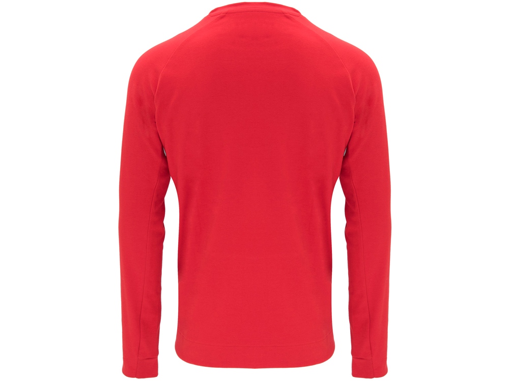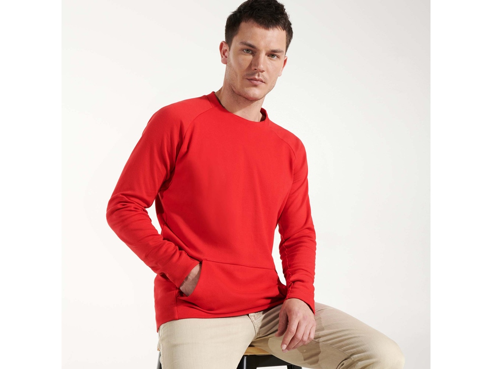 Свитшот с рукавом реглан. Горловина спинки и боковая часть манжет из риба 1х1. Карман кенгуру, диагональные боковые швы с наклонам к центру переда.