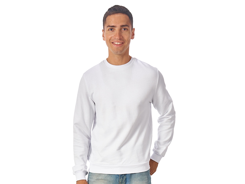 Свитшот из плотного 3х ниточного хлопкового футера. Горловина, манжеты и низ отделан рибом 2х2. Горловина спинки внутри дополнительно укреплена тесьмой с выработкой елочка. Полотно из утяжеленного хлопкового футера внутри с петельками без начеса.