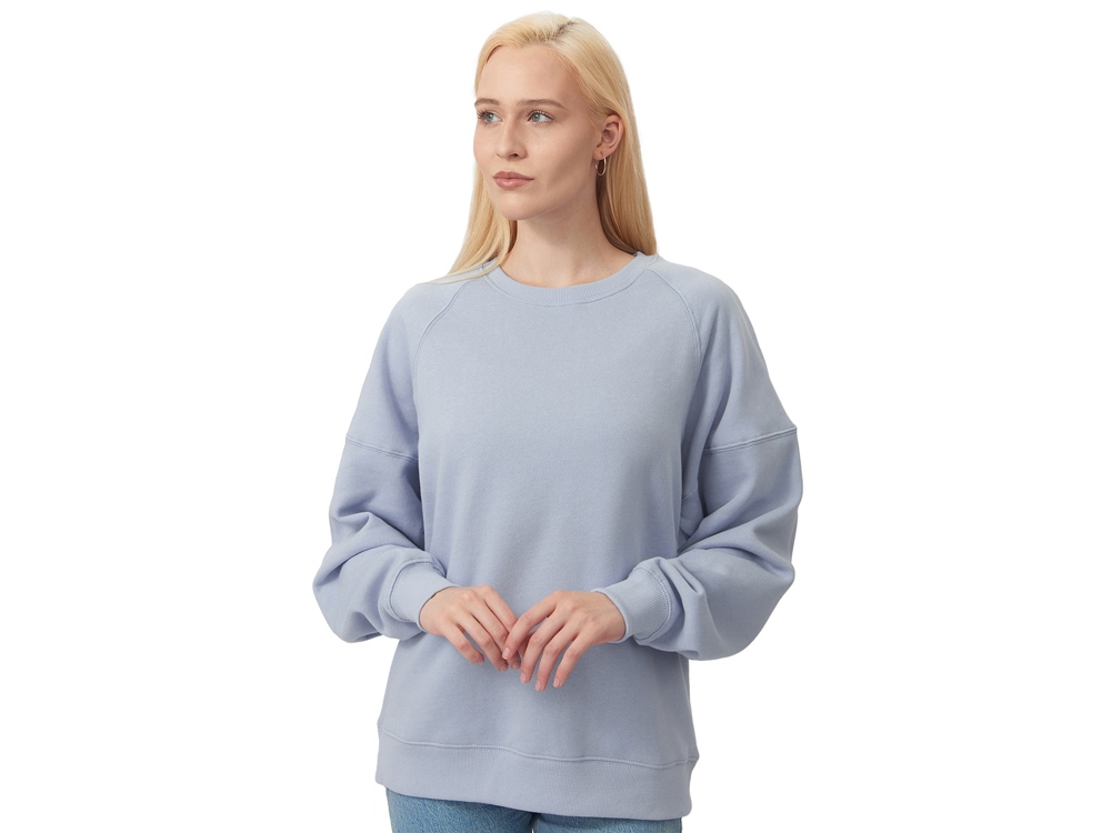 Главная особенность этого свитшота оверсайз — необычный рукав из двух частей: верхней — реглан до середины предплечья — и нижней, которая заканчивается резинкой. Благодаря такому необычному крою свитшот сидит комфортно по фигуре.