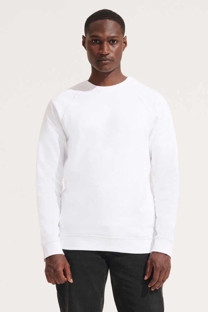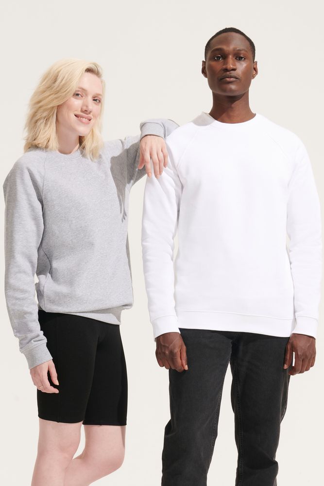 Свитшот унисекс из органического хлопка. Лейбл производителя в боковом шве изнутри, в шве горловины — только бирка с размером, что позволяет удобно нанести свой логотип.