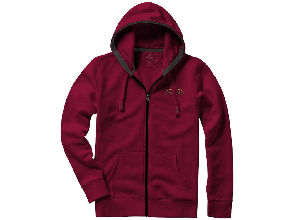 Свитер Arora с капюшоном и застежкой-молнией на всю длину. резинка 2х2 на боковых вставках, поясе и манжетах. Карман кенгуру. Мужская и женская модели с завязками на капюшоне. Подкладка внутри капюшона. Подкладка на полумесяце. Атласная лента внутри горловины. Принт лого сзади в тон изделия. Серебристые люверсы с лого. Трикотаж: 80% хлопок и 20% полиэстер, чесаная внутренняя сторона. 300 г/м².