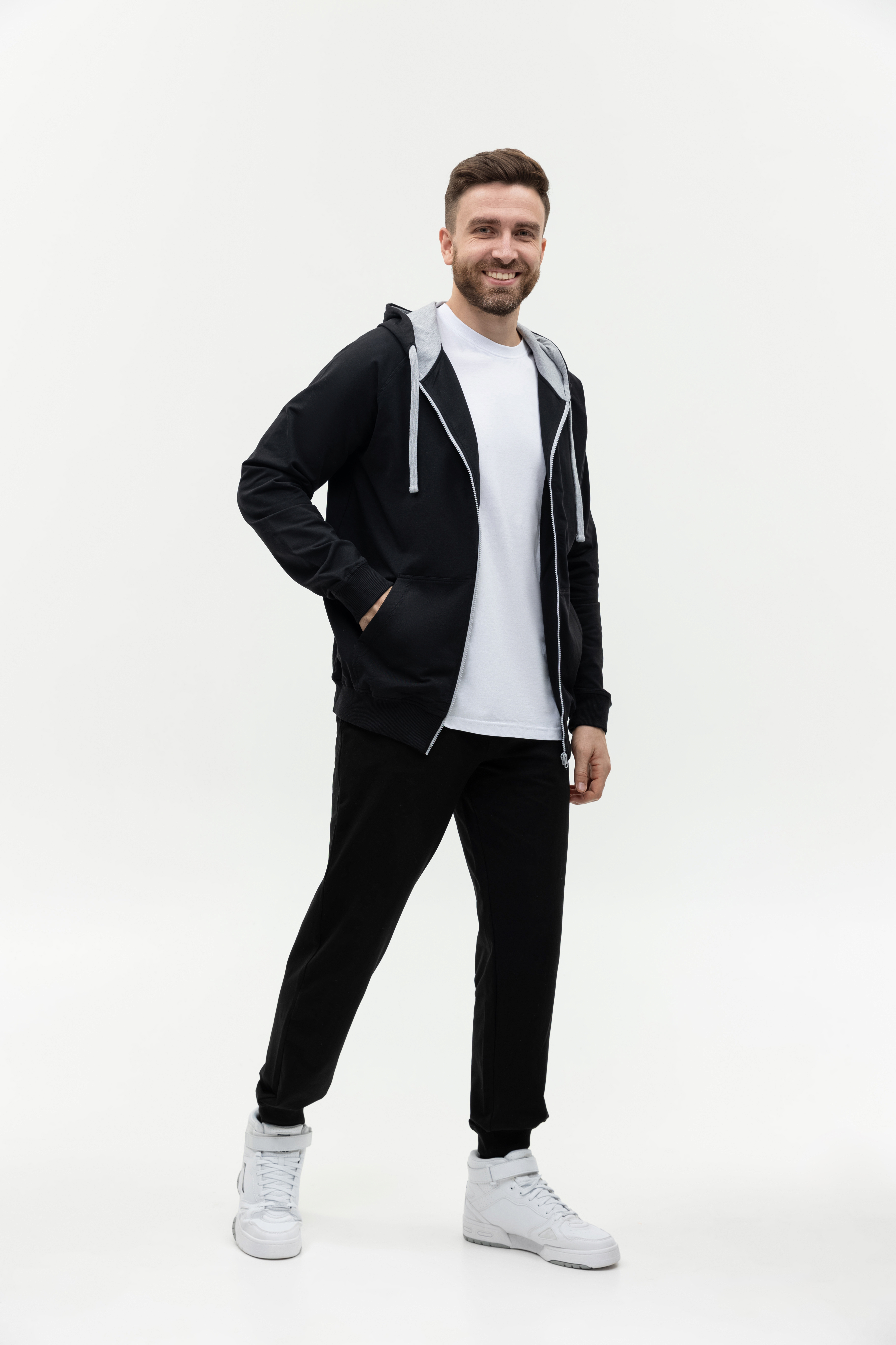 Толстовка мужская STAN с капюшоном на молнии футер без начёса 260, 61, Чёрный, (20) (54/XXL)