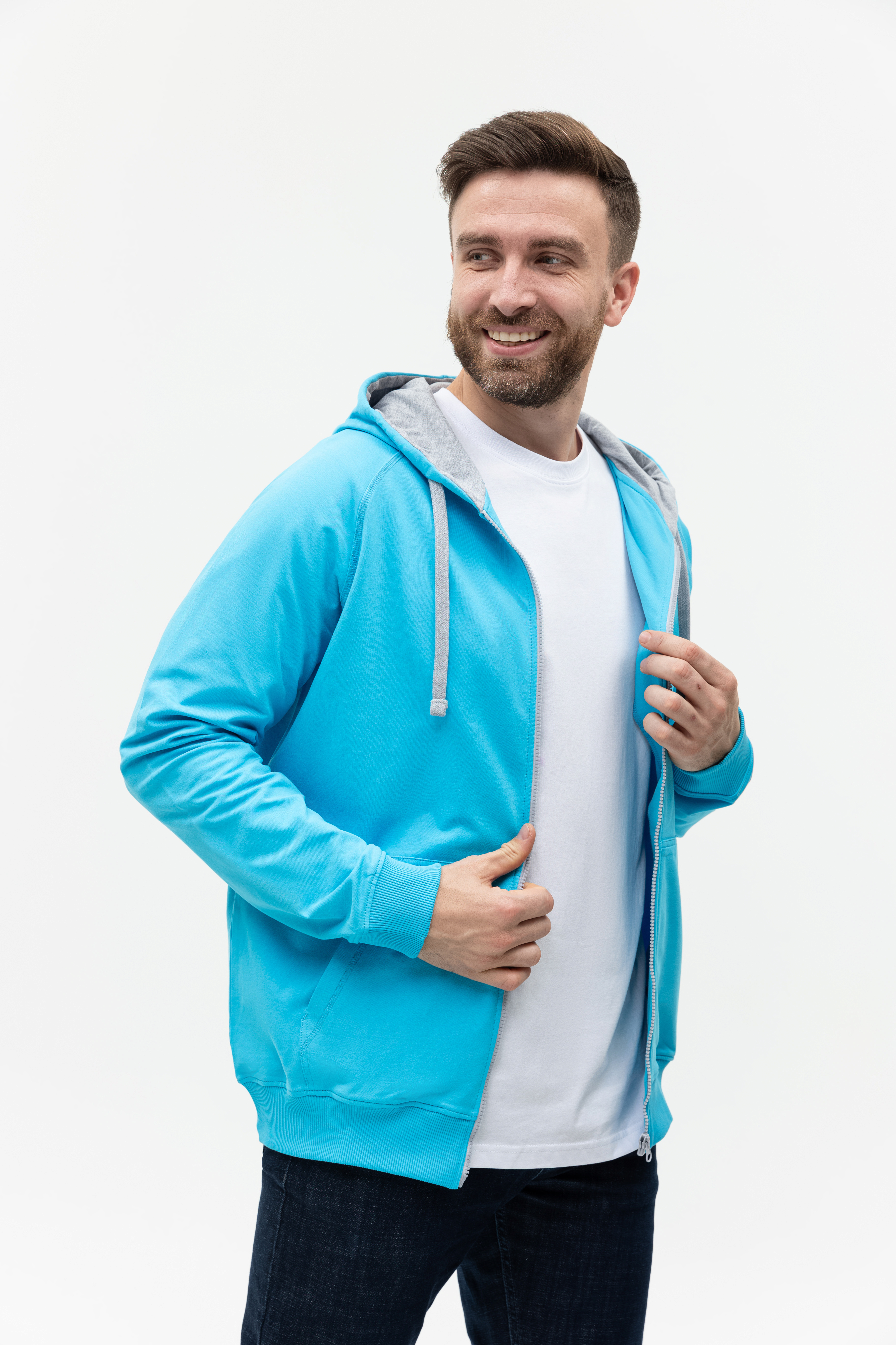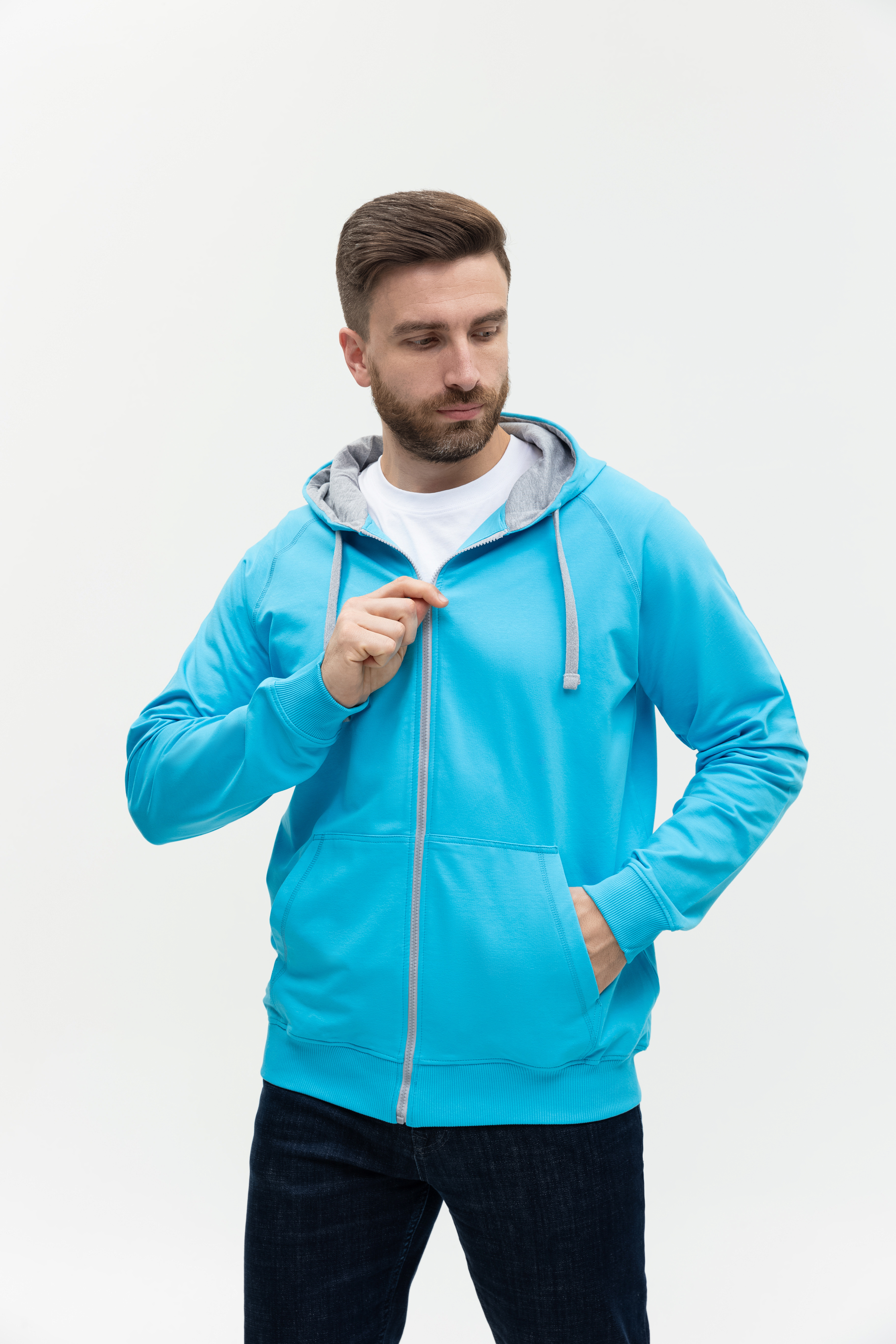 Толстовка мужская STAN с капюшоном на молнии футер без начёса 260, 61, Бирюзовый, (32) (52/XL)