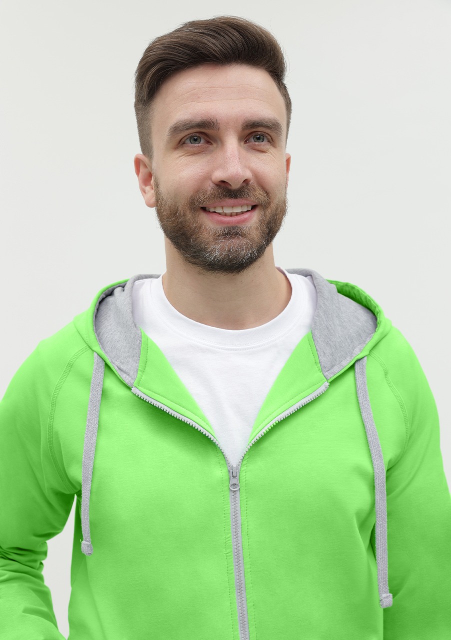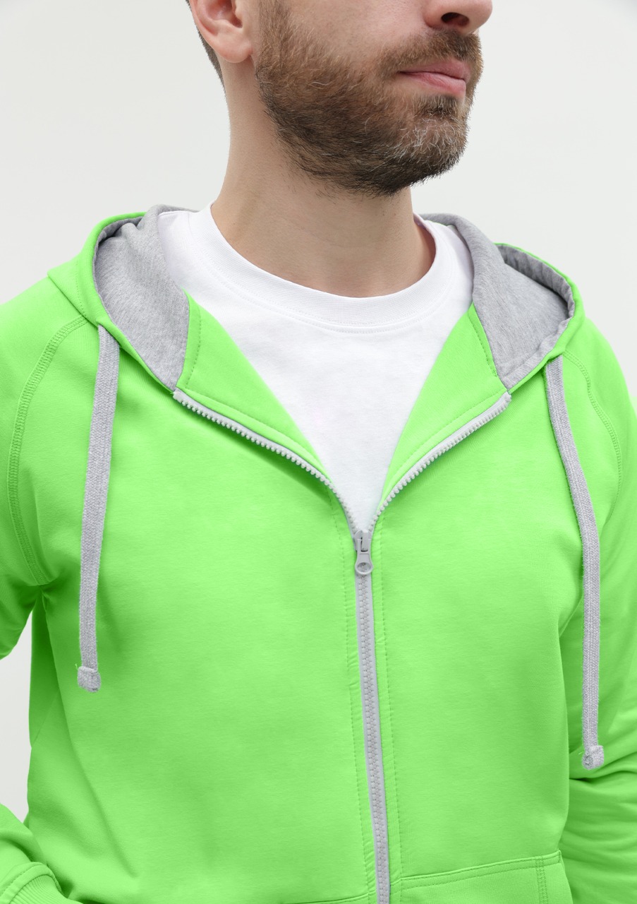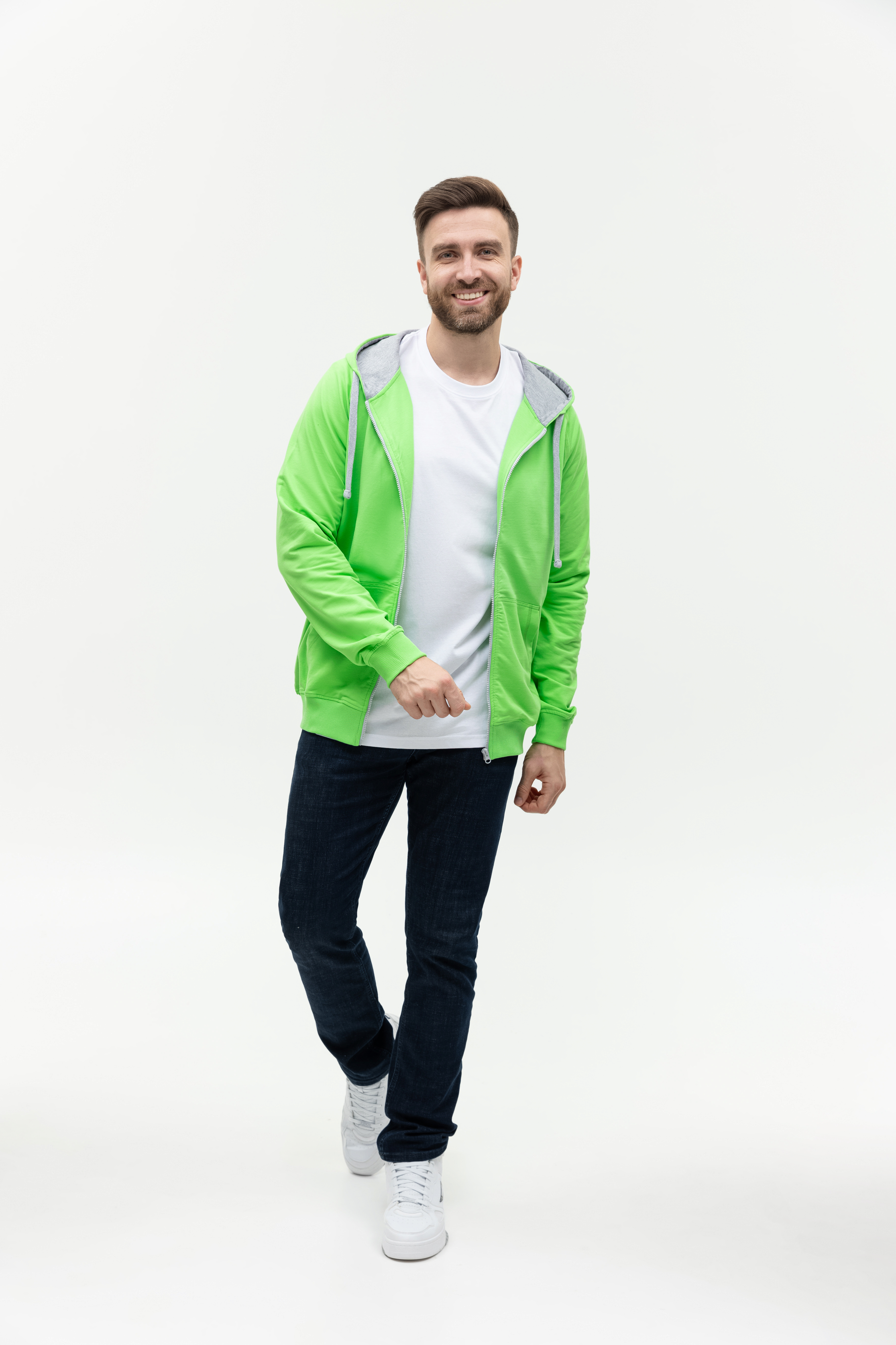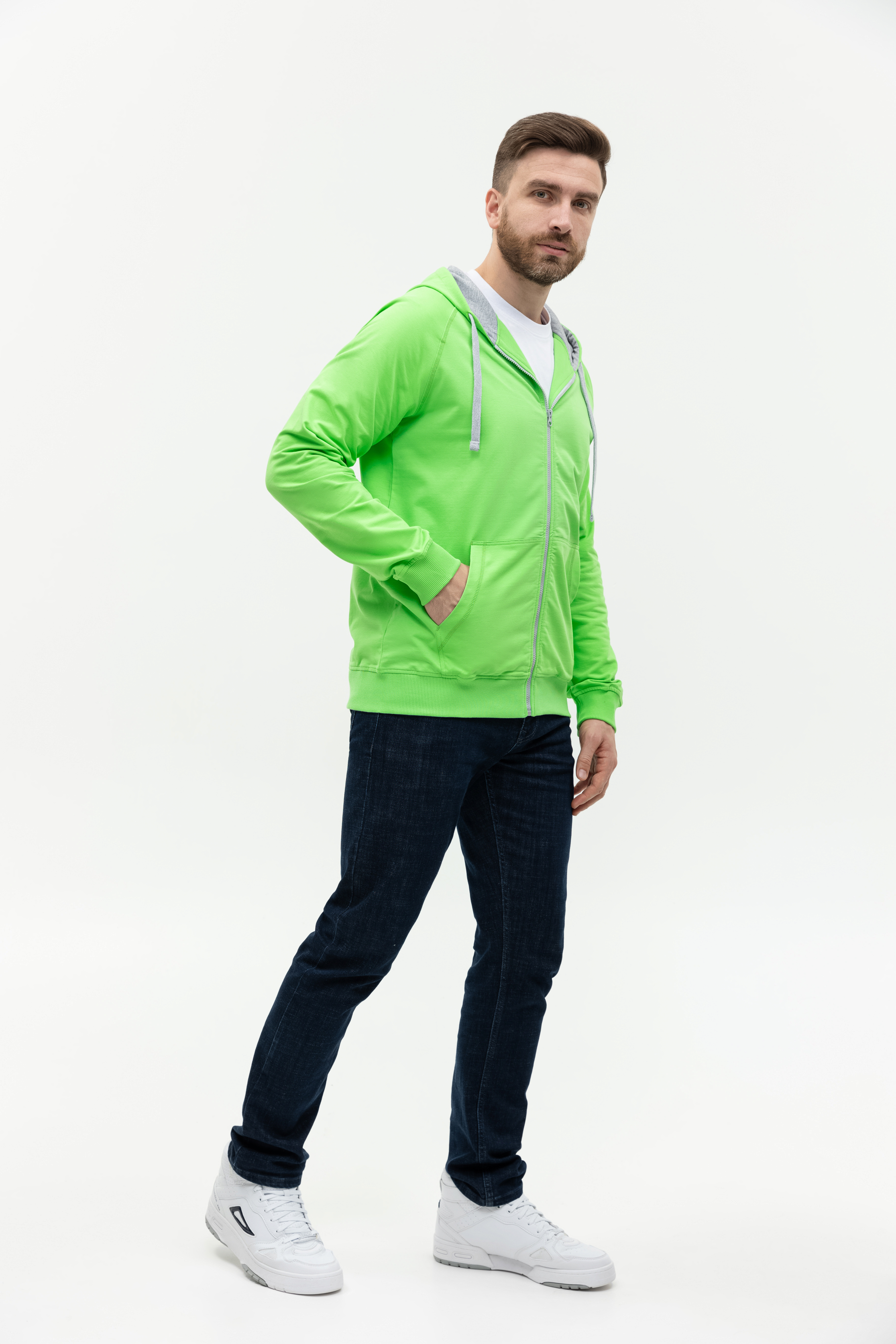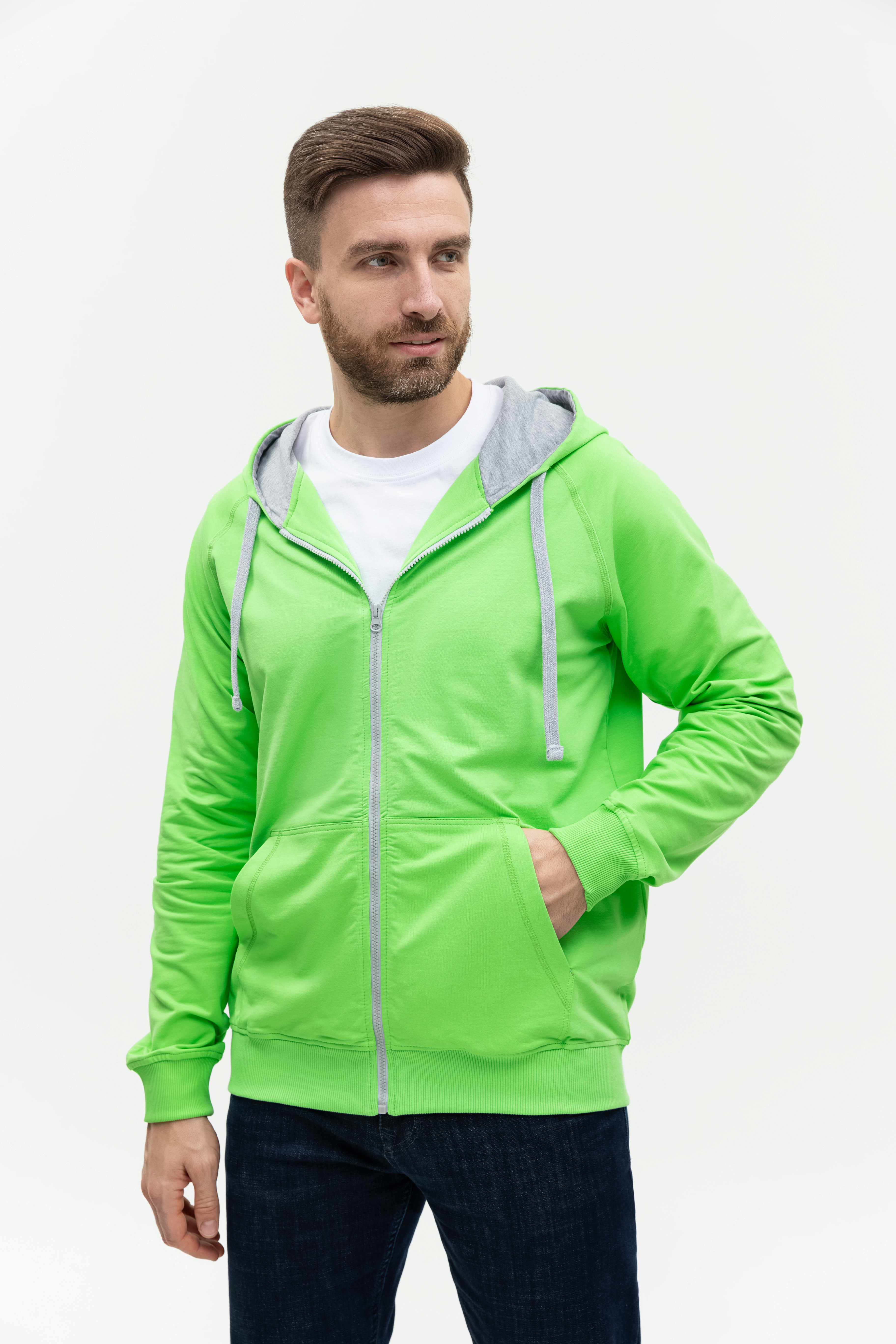 Толстовка мужская STAN с капюшоном на молнии футер без начёса 260, 61, Ярко-зелёный, (26) (54/XXL)