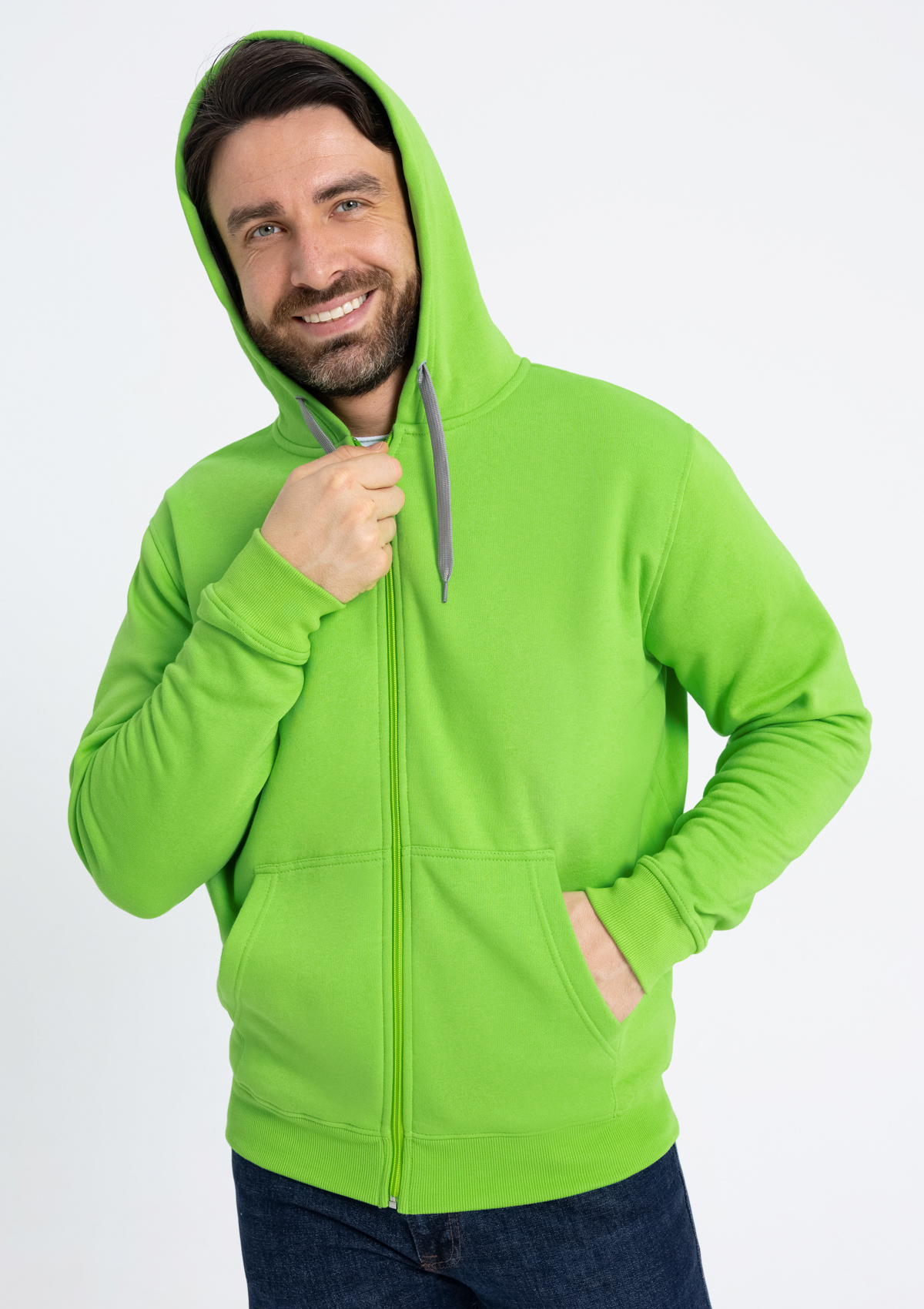 Толстовка мужская STAN с капюшоном на молнии футер с начёсом 280, 17, Ярко-зелёный, (26) (56/XXXL)