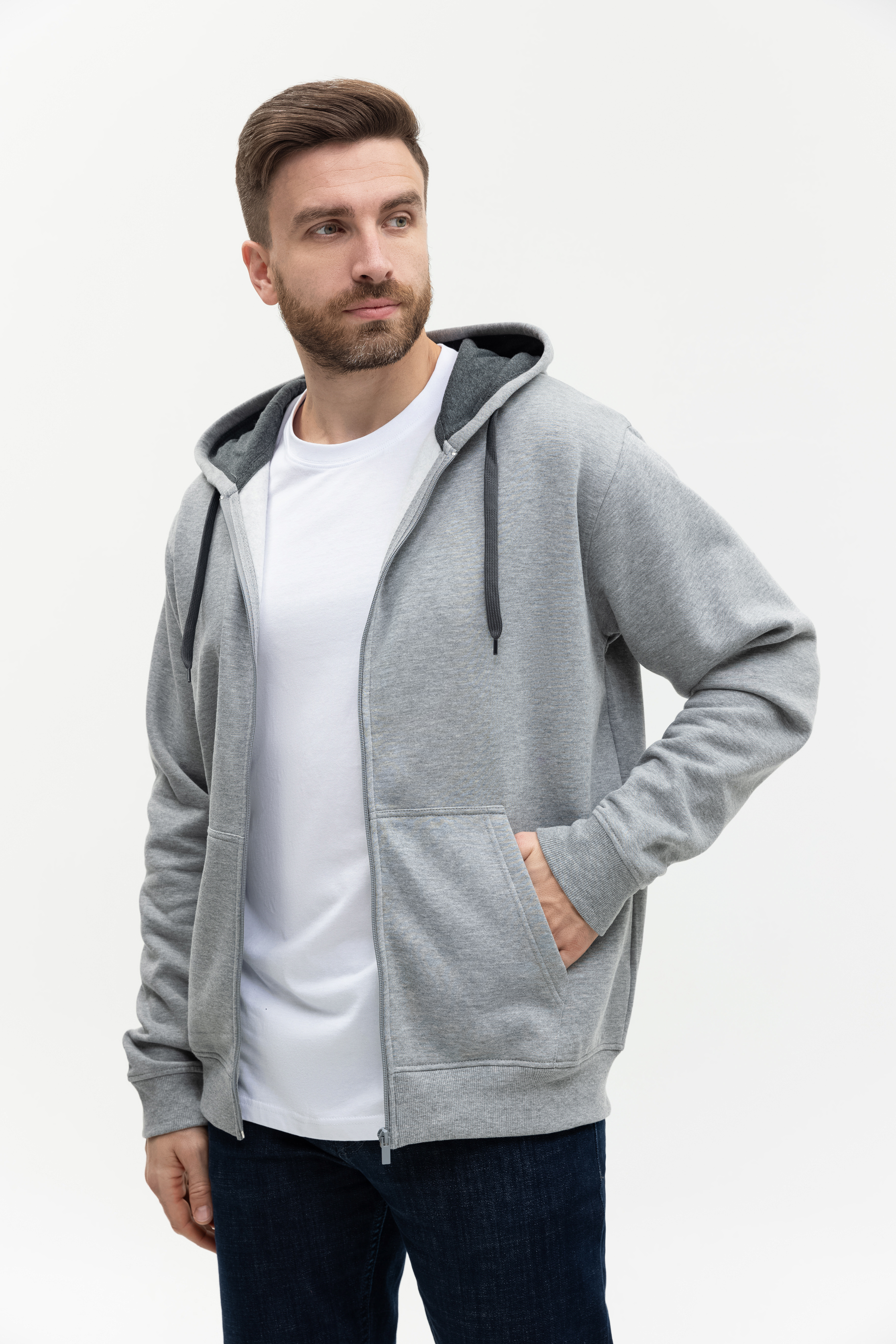 Толстовка мужская STAN с капюшоном на молнии футер с начёсом 280, 17, Серый меланж, (50/60) (46/S)
