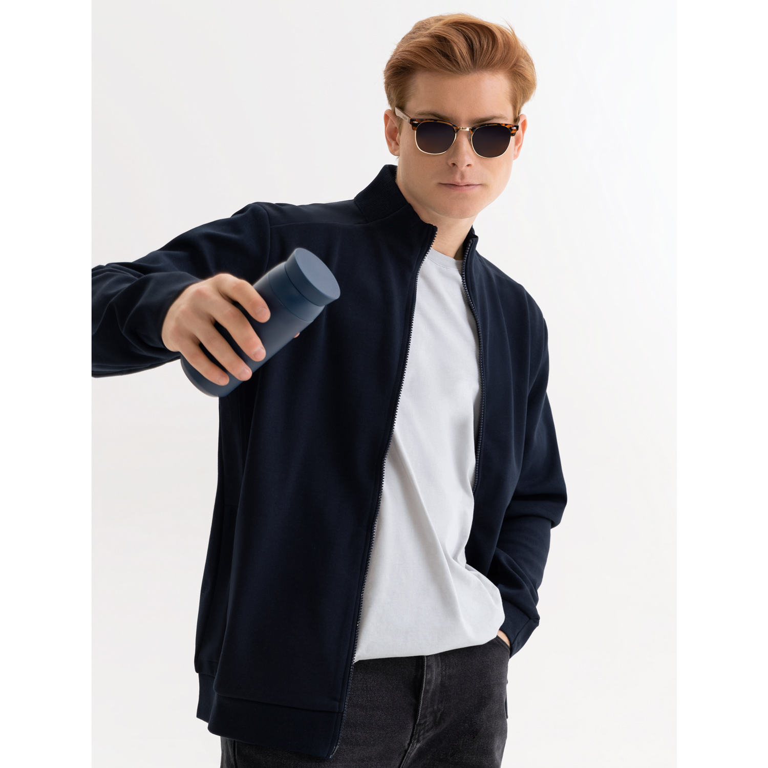 Мужская толстовка на реверсивной молнии прямого силуэта с карманами на молнии. Эта модная и универсальная модель станет идеальной базой для повседневного гардероба.