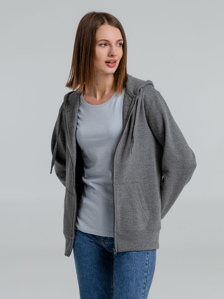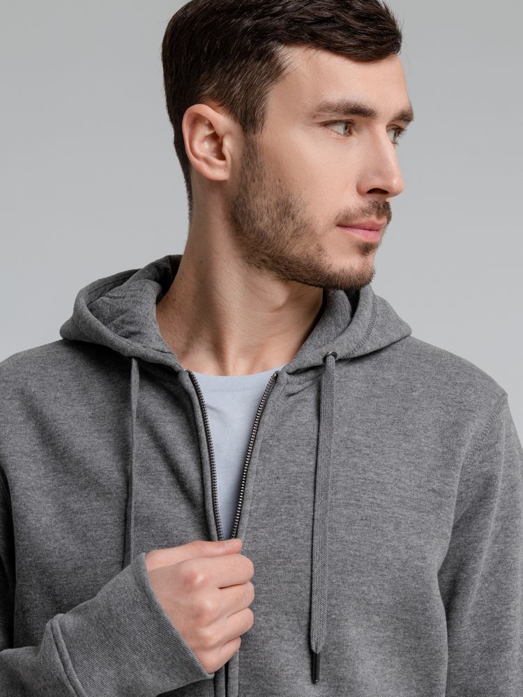 Толстовка на молнии с капюшоном унисекс King, темно-серый меланж, размер L