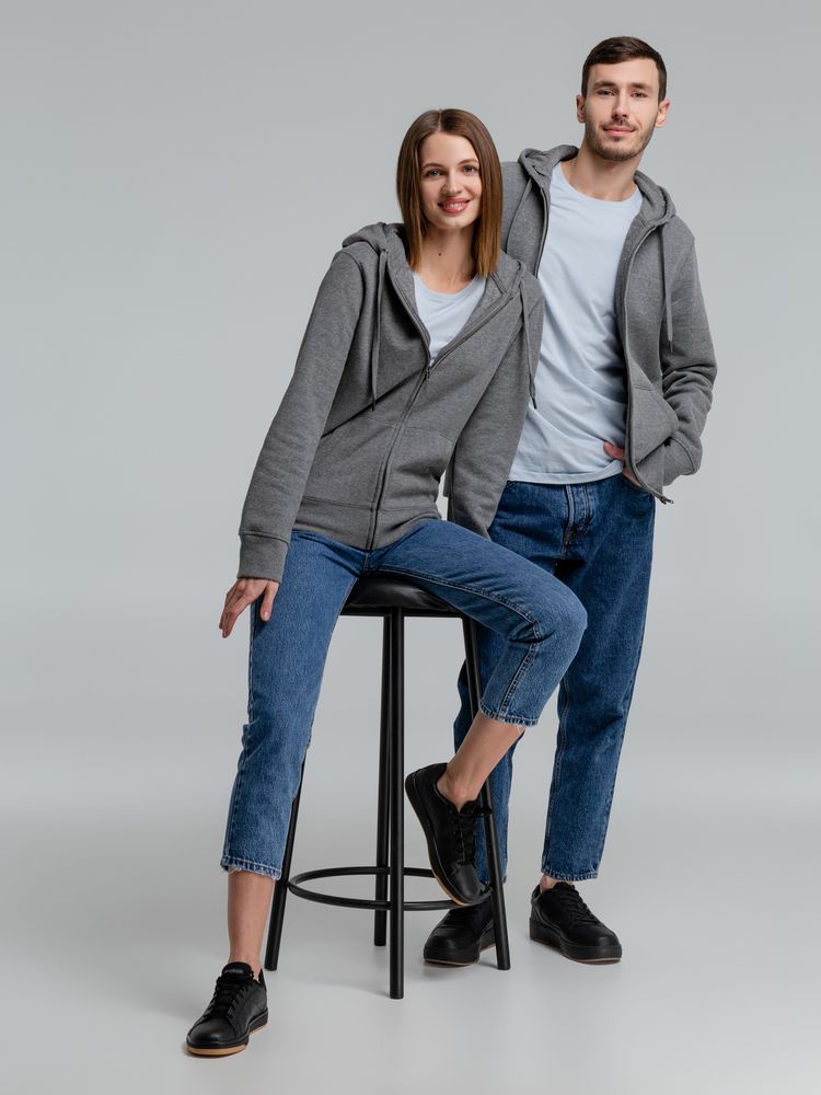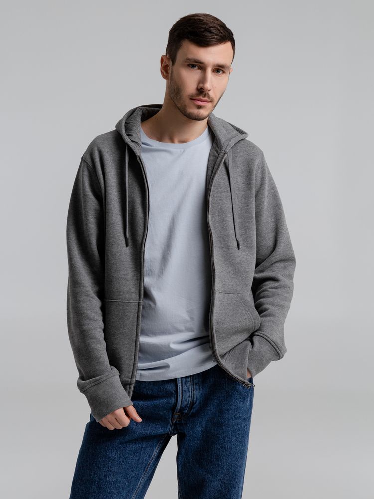 Модель : Толстовка на молнии с капюшоном унисекс King, темно-серый меланж