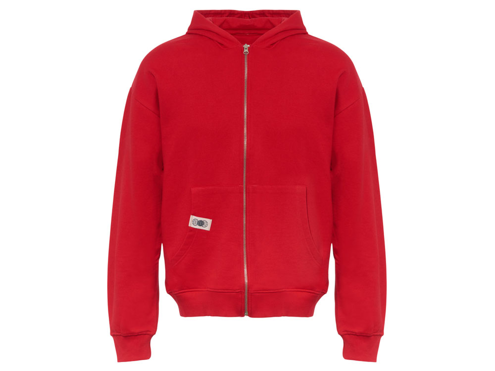 Толстовка оверсайз с капюшоном на молнии Monaco, красный, лейбл, бренд тайп и термотрансфер