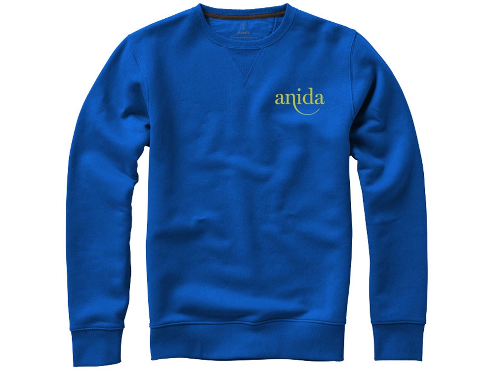 Свитер с круглым вырезом Surrey. резинка 2х2 на манжетах и поясе. Резинка 2х2 на v - образной вставке по центру спереди. Атласная лента от плеча к плечу. Ворсистый внутри для мягкости, тепла и комфорта. Принт лого сзади в тон изделия. Трикотаж: 80% хлопок и 20% полиэстер, чесаная внутренняя сторона. 300 г/м².