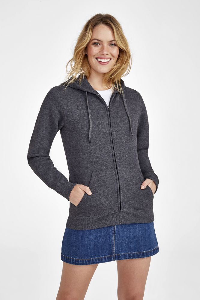Женская толстовка на молнии с капюшоном.