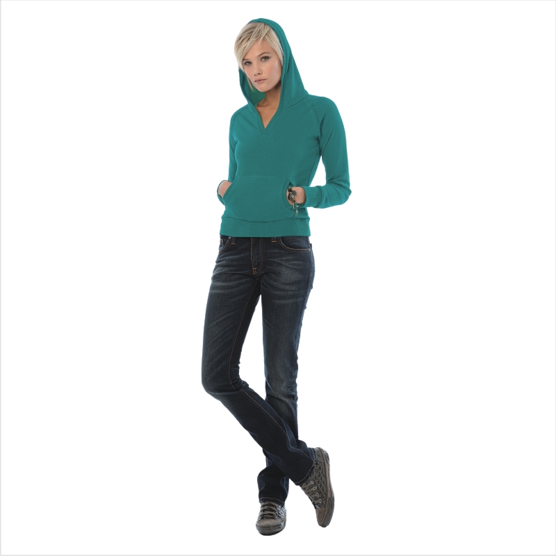Толстовка женская плотностью 280 г./кв.м с капюшоном, карманом "кенгуру", модным V-образным воротником.