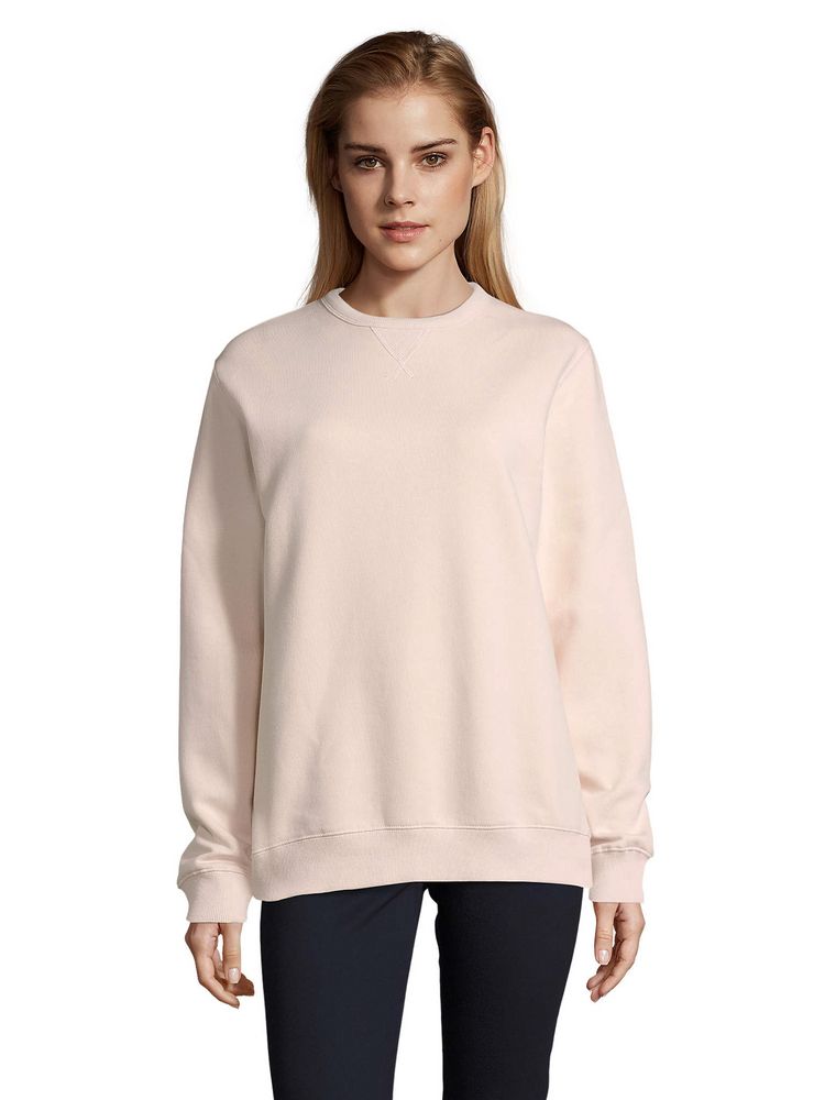 Женская утепленная толстовка с круглым вырезом и декоративной треугольной вставкой. Лейбл производителя в боковом шве изнутри, в шве горловины — только бирка с размером, что позволяет вам нанести свой логотип.