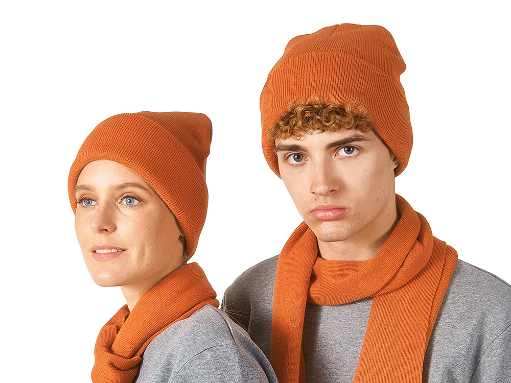 Двухслойная шапка из мягкого трикотажа. Регулируемый отворот.