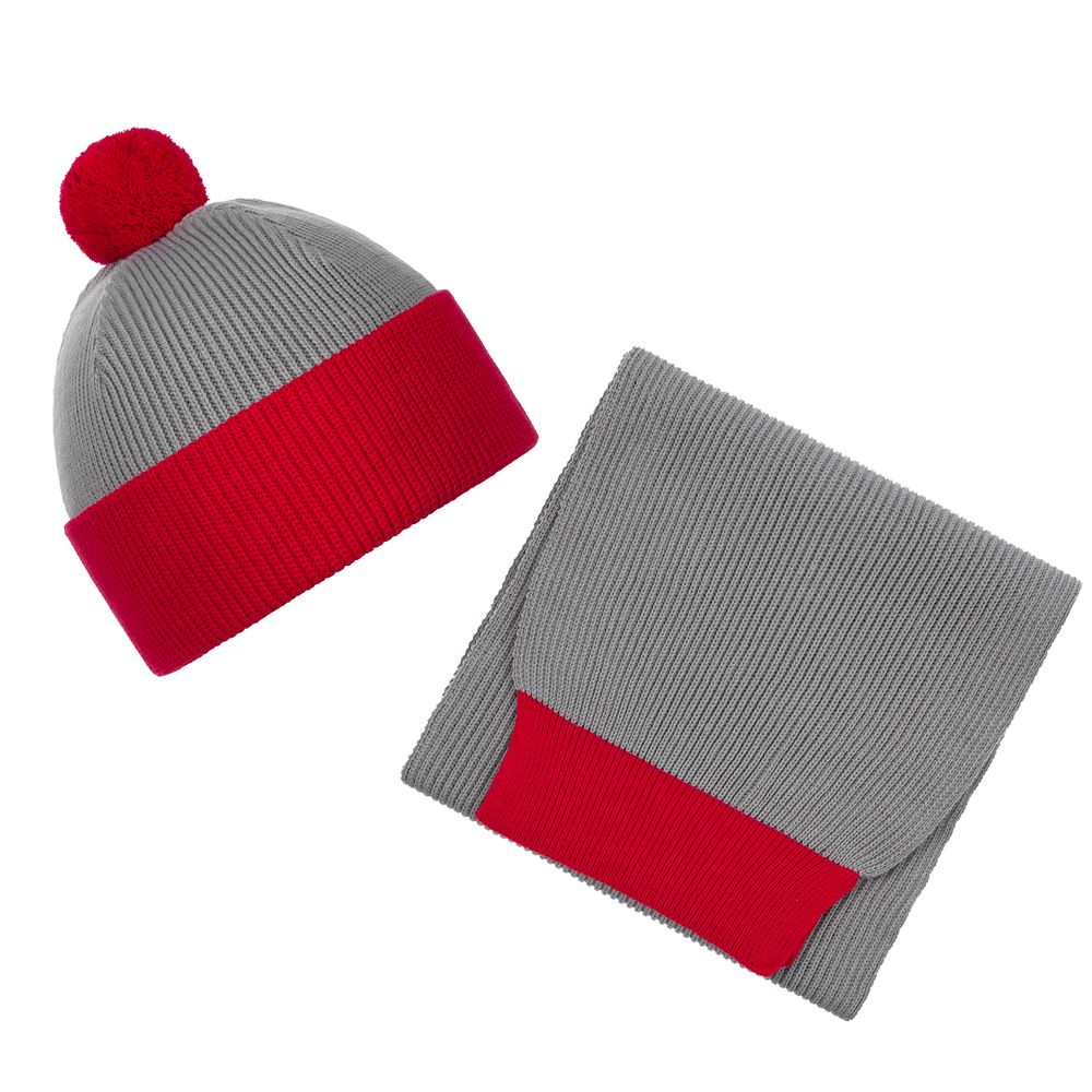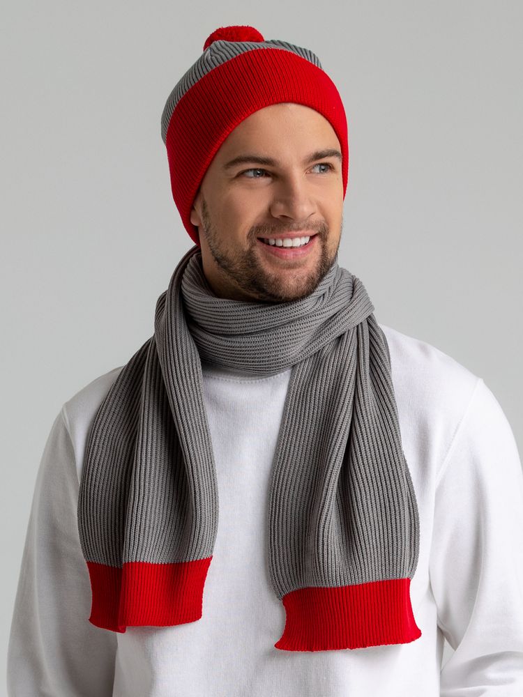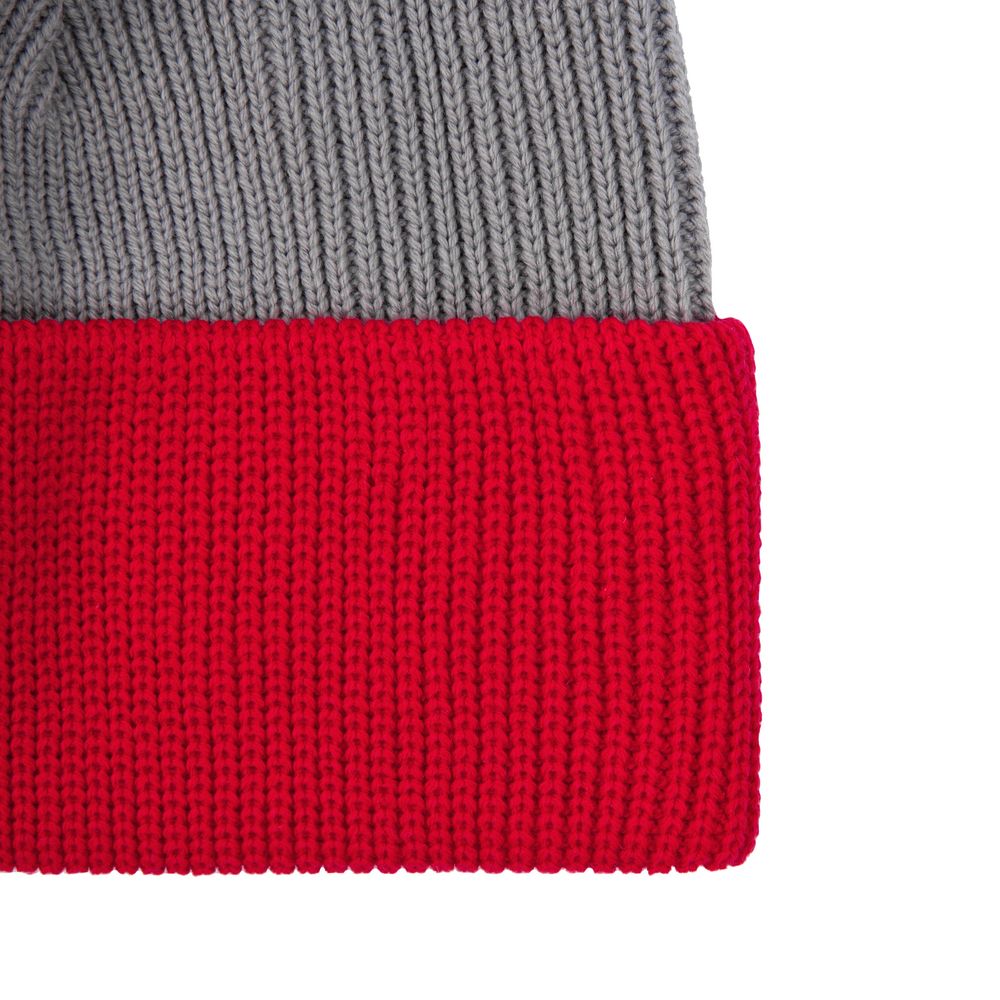 Двуслойная шапка фактурной вязки с контрастным подворотом и помпоном.