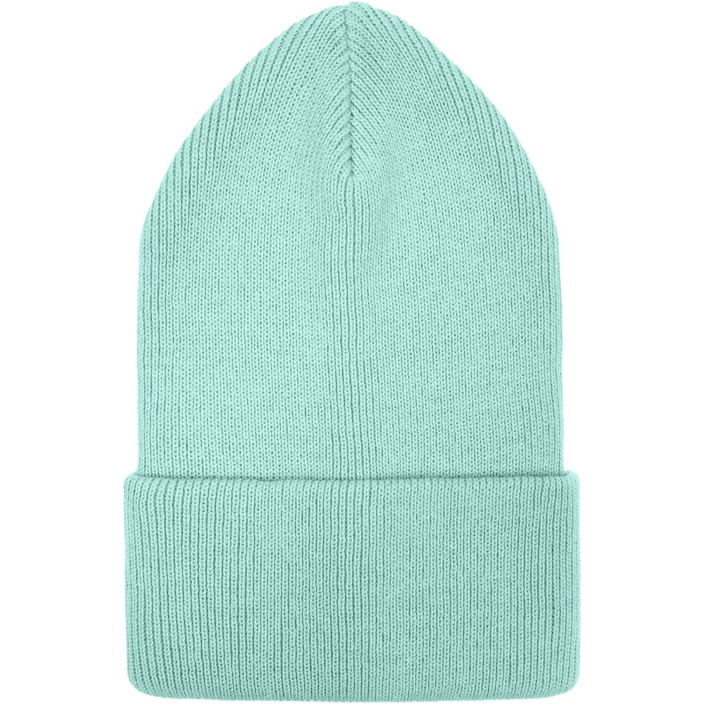 Двухслойная шапка, связанная резинкой, с широким отворотом.