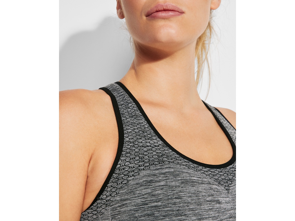 Женский топ для занятий спортом. Спинка-борцовка и бесшовная конструкция. Средняя степень поддержки.