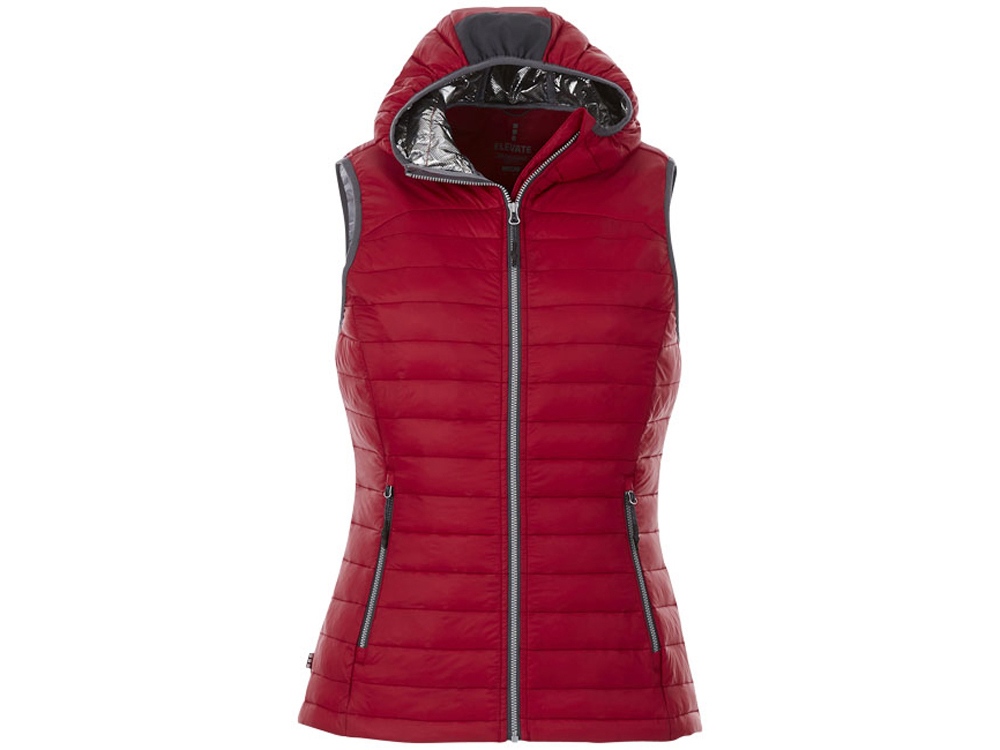 Утепленный женский жилет Junction. Упаковывается в нижний левый карман. Внутренний выход для медиапроводов. Эластичные завязки с фиксаторами. Манжеты-резинки контрастного цвета. Молния по центру с отражающей лентой. Передний карман на молнии. Петелька-вешалка. Комфортный ярлык-трансфер на изделии. 100% нейлоновая тканая матовая отделка 380T, водоотталкивающая и пухонепроницаемая ткань. 100% полиэстеровый наполнитель из искусственного пуха.