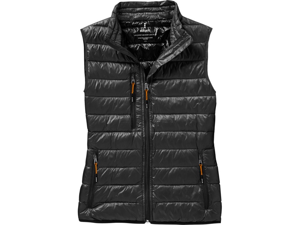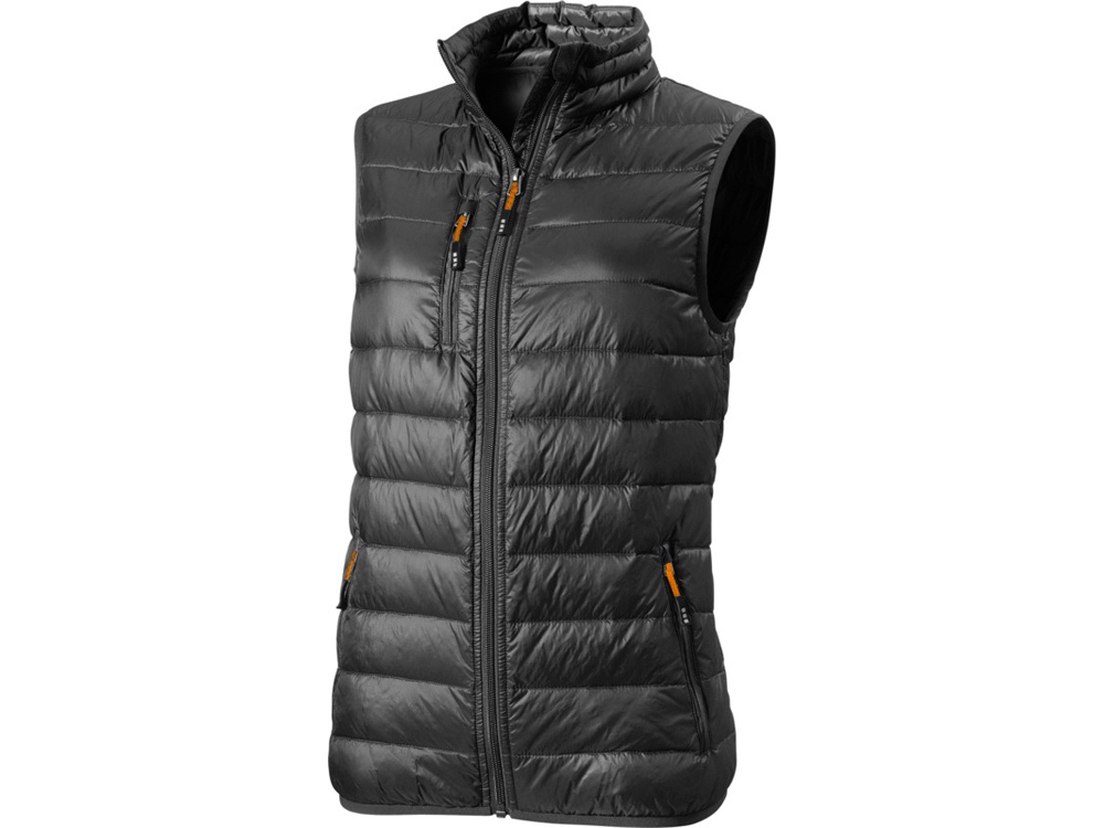 Женская пуховая жилетка Fairview. Стандартный покрой. Ткань не пропускает пух. Карманы для рук и нагрудный на молнии. Внутренний противоветровой клапан и защита подбородка. Эластичная обшивка внизу и на проймах. Ткань дышащая, ветронепроницаемая и влагоотталкивающая. Отражающий лого сзади. Ремешки на собачку (второй комплект в цвете антрацит). Жилет - версия победителя премии Reddot, куртки Scotia. Ткань из 100% нейлона с матовым и блестящим водоотталкивающим покрытием, 20D. 80% пух и 20% перо.