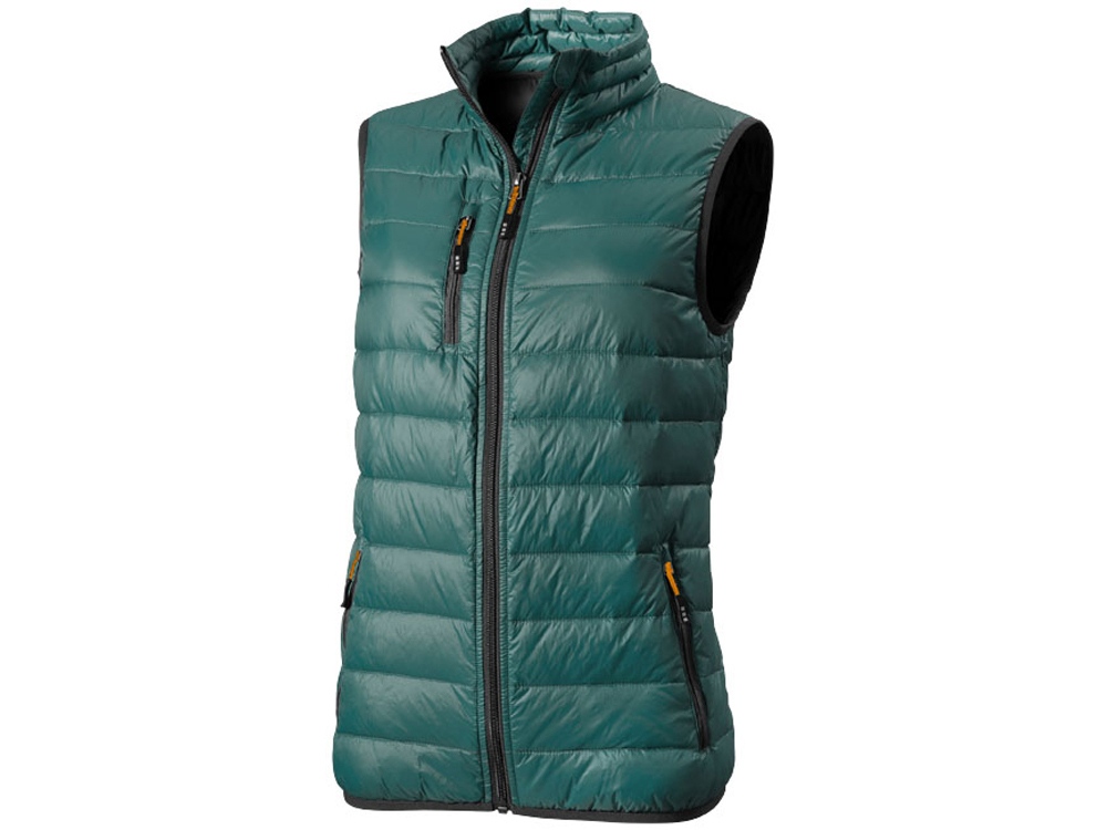 Женская пуховая жилетка Fairview. Стандартный покрой. Ткань не пропускает пух. Карманы для рук и нагрудный на молнии. Внутренний противоветровой клапан и защита подбородка. Эластичная обшивка внизу и на проймах. Ткань дышащая, ветронепроницаемая и влагоотталкивающая. Отражающий лого сзади. Ремешки на собачку (второй комплект в цвете антрацит). Жилет - версия победителя премии Reddot, куртки Scotia. Ткань из 100% нейлона с матовым и блестящим водоотталкивающим покрытием, 20D. 80% пух и 20% перо.
