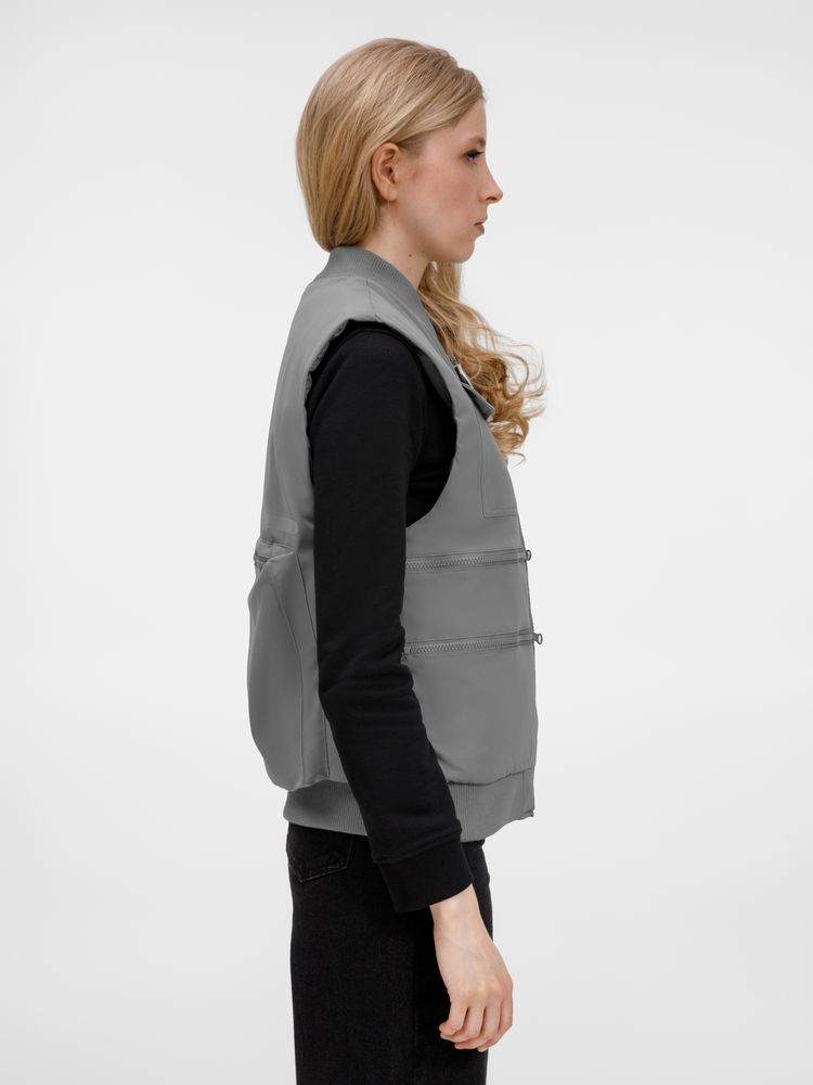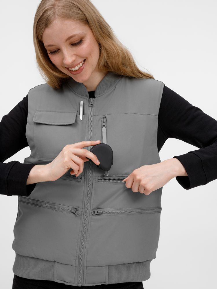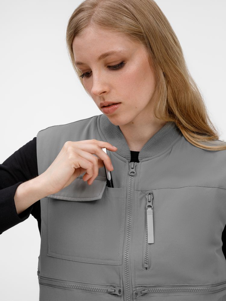 • 8 функциональных карманов, из них на передней части: 1 карман с клапаном для документов/рации, 1 карман для ручки, 5 вместительных на молнии, а так же 1 карман под планшет на молнии на спинке жилета