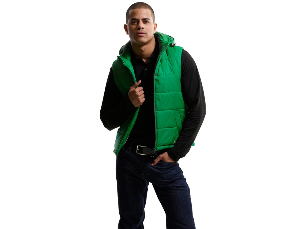 Жилет Mixed Doubles. Прилегающий покрой. Отстегивающийся капюшон. Эластичные завязки со стопперами внизу. Карманы для рук. Петелька для застежки. Внутренний карман. Контрастного цвета одинарная подкладка. Ткань с ромбовидным рисунком, 100% нейлон с белым AC покрытием.