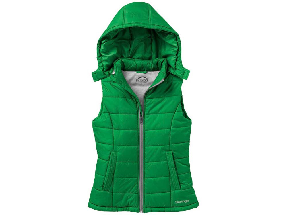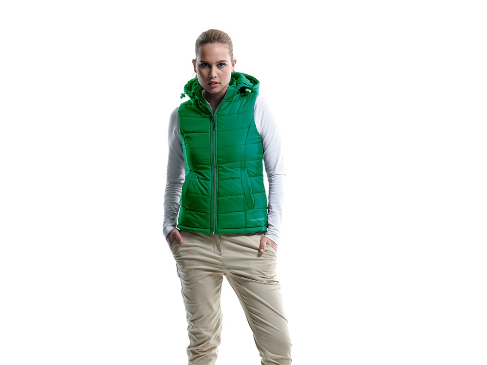 Женский жилет Mixed Doubles. Прилегающий покрой. Отстегивающийся капюшон. Эластичные завязки со стопперами внизу. Карманы для рук. Петелька для застежки. Внутренний карман. Контрастного цвета одинарная подкладка. Ткань с ромбовидным рисунком, 100% нейлон с белым AC покрытием. Термотрансфер (1 цвет (цветные изделия)) на данный товар осуществляется бесплатно. Оплачивается только настройка оборудования в размере 8700 рублей на весь тираж.