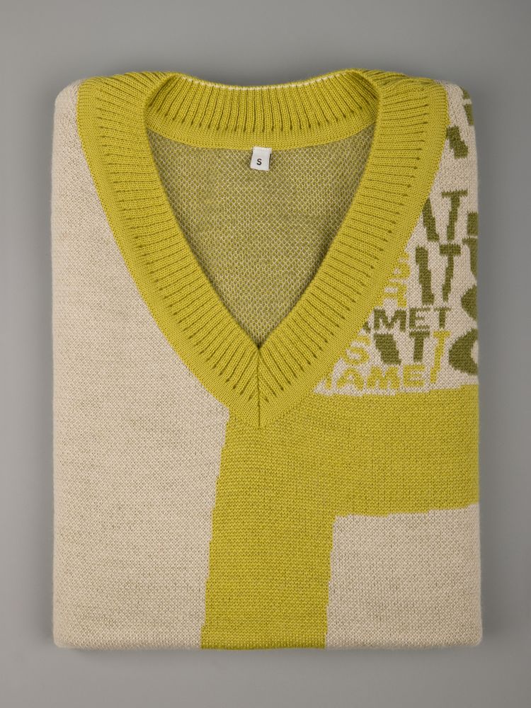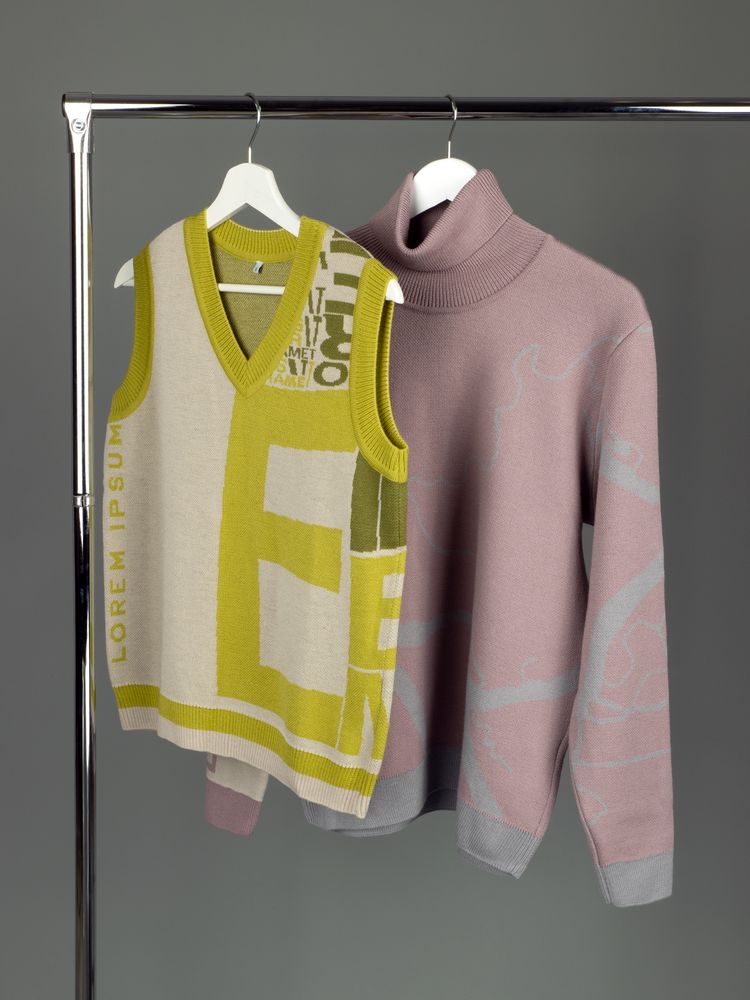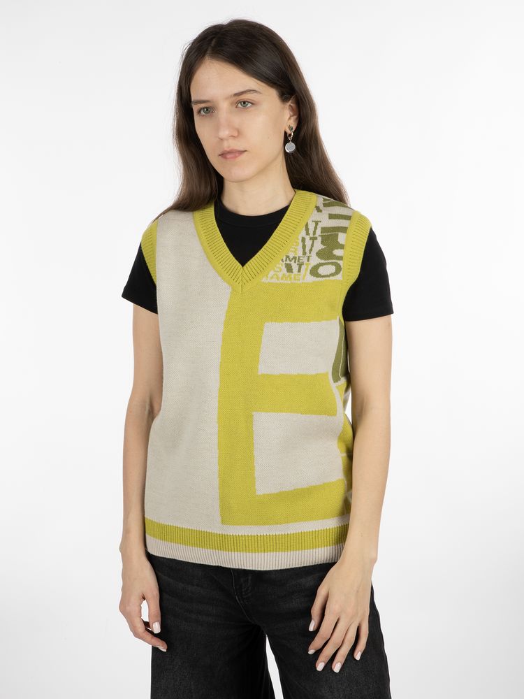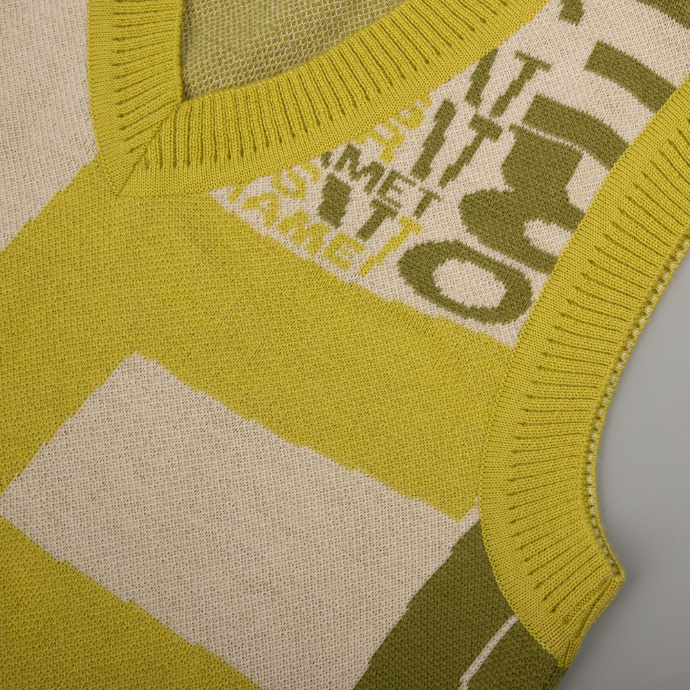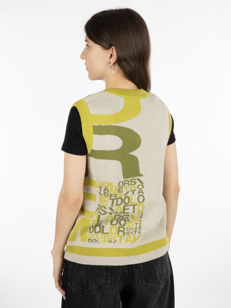 Жилет с вывязанным логотипом и индивидуальным рисунком в фирменной цветовой гамме.