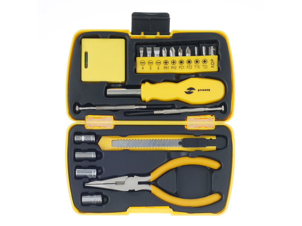 Набор инструментов Stinger, 20 инструментов, в пластиковом кейсе, 160х90x40 мм, желтый