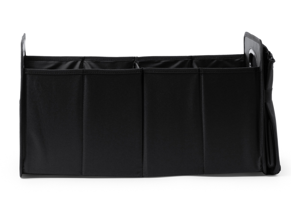 Складной органайзер для автомобиля из полиэстера 600D с усиленными ручками. Два основных отсека и внешний карман. Включает в себя съемный охладитель объемом 12 л с изотермической подкладкой.