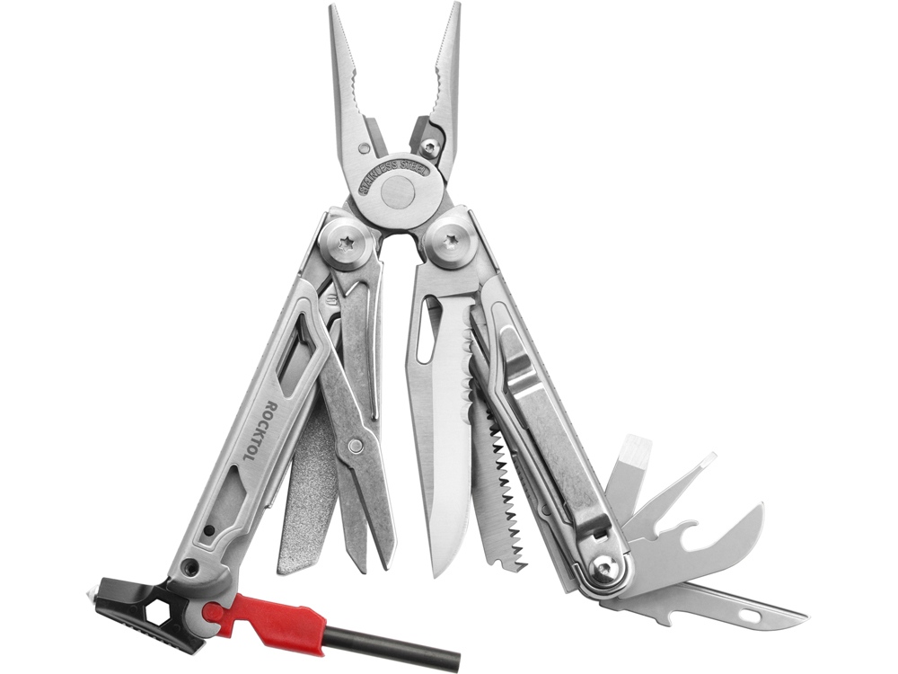 Нож-мультитул Rocktol 12 в 1 с титановыми ручками, серый
