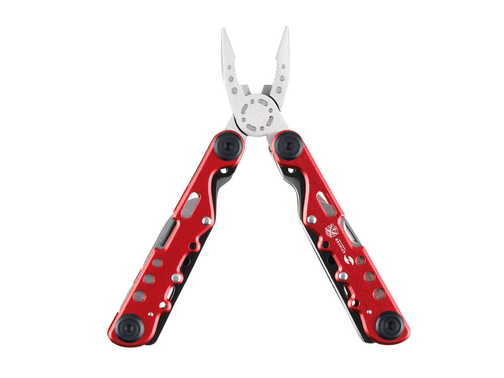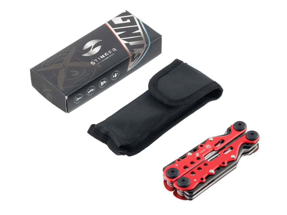 Мультитул Stinger, 105x40 мм, 13 функций, сталь, красно-серебристый, в комплекте нейлоновый чехол