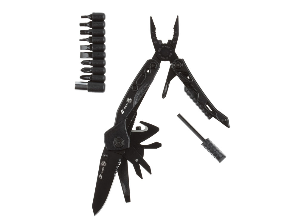 Мультитул Stinger, 105x45 мм, 13 функций, сталь, чёрный, в комплекте 9 насадок и нейлоновый чехол