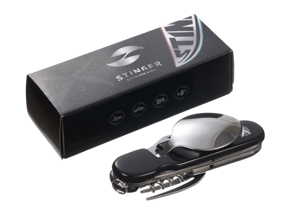 Нож перочинный Stinger, 109 мм, 8 функций, материал рукояти: АБС-пластик (чёрный)