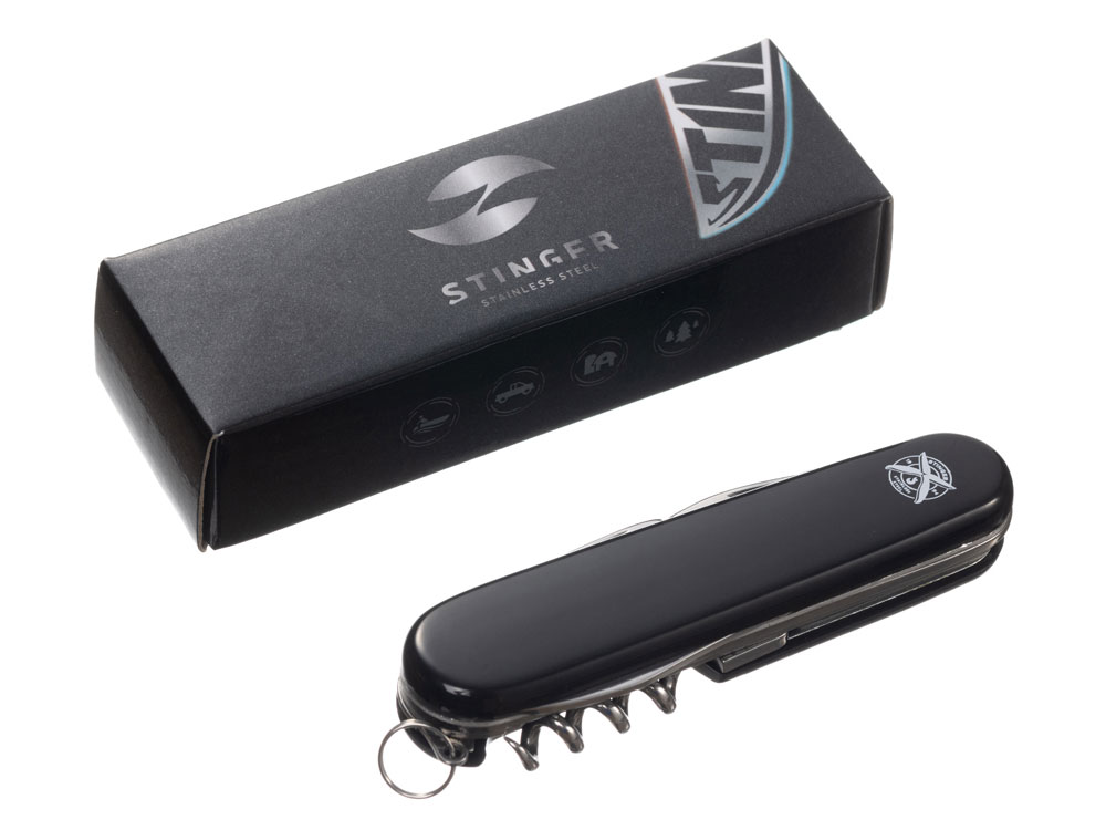 Нож перочинный Stinger, 90 мм, 11 функций, материал рукояти: АБС-пластик (чёрный)
