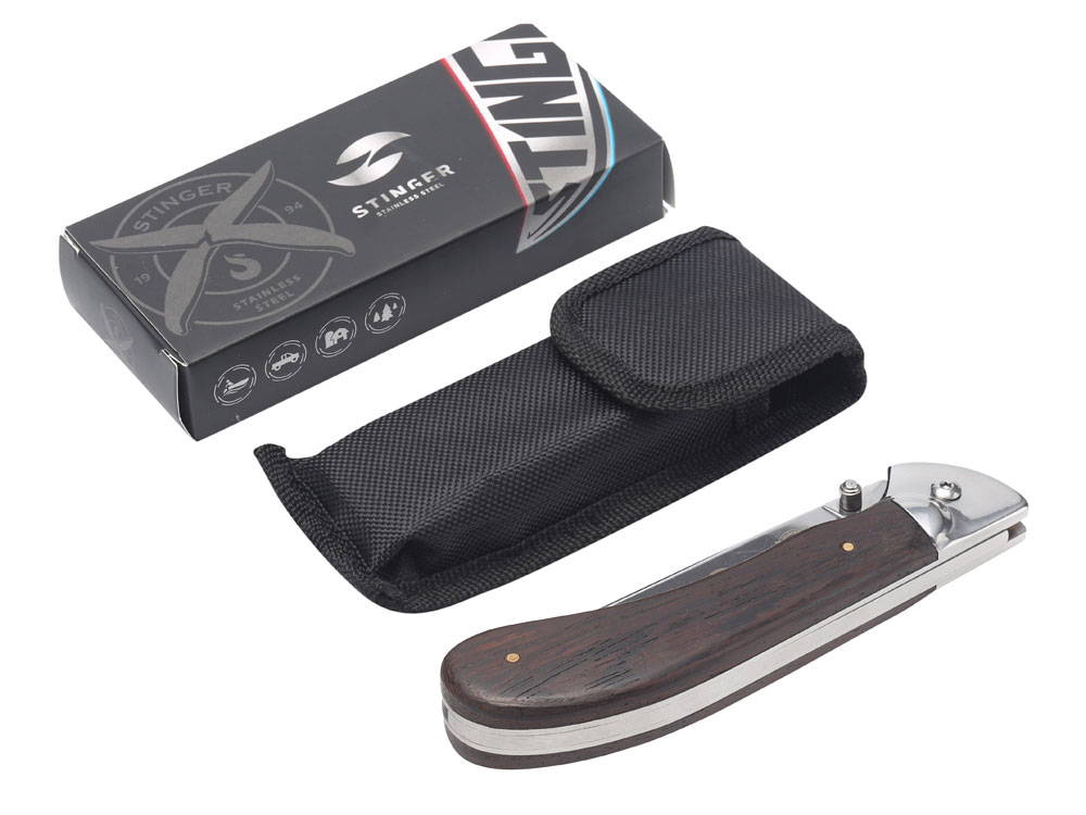 Нож складной Stinger, 105 мм, (серебристый), материал рукояти: сталь/дерево (серебристо-коричневый)