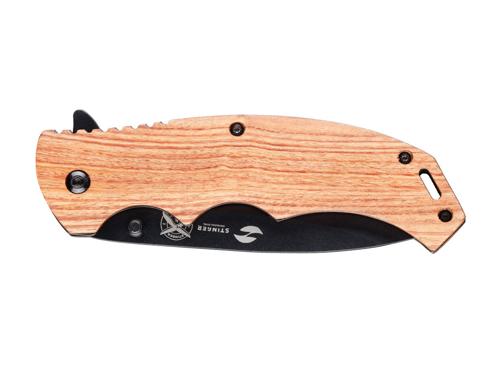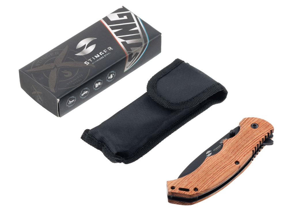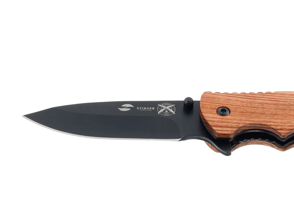 Нож складной Stinger, 120 мм, (чёрный), материал рукояти: дерево/сталь (коричневый)