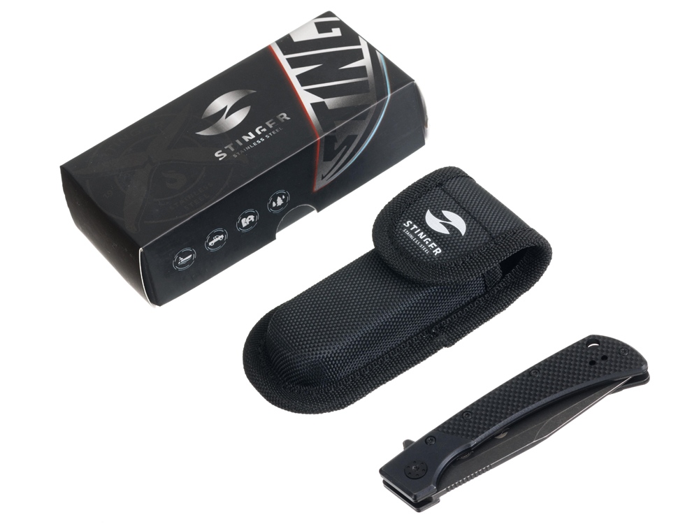 Нож складной Stinger, 102 мм, (черный), материал рукояти: нержавеющая сталь, стеклотекстолит G10