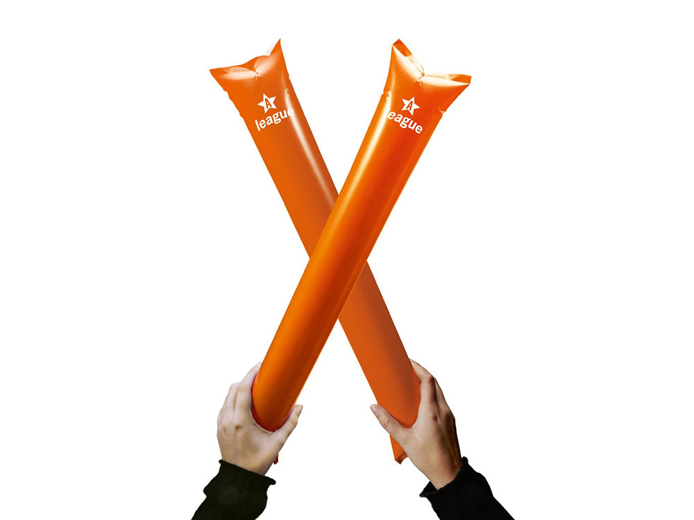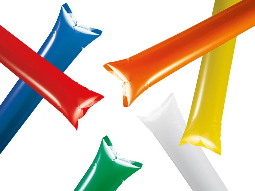 Надувные палки-стучалки, доступны в различных цветах. 600 x 100 мм. Вид нанесения, рекомендуемый поставщиком: трафаретная печать.