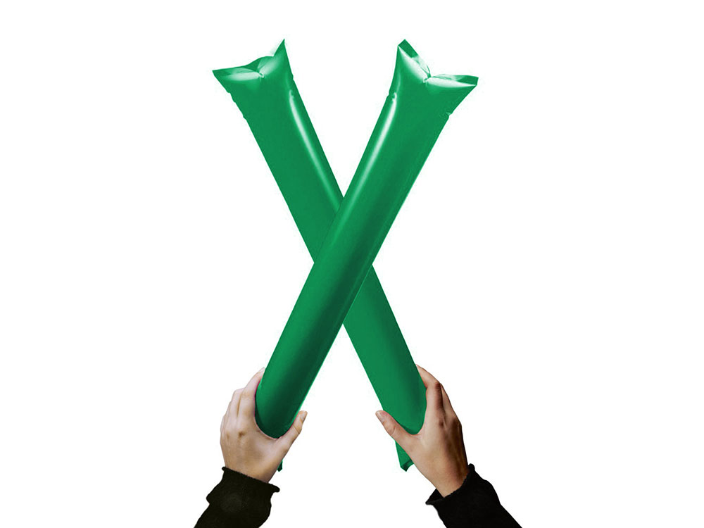 Надувные палки-стучалки, доступны в различных цветах. 600 x 100 мм. Вид нанесения, рекомендуемый поставщиком: трафаретная печать.