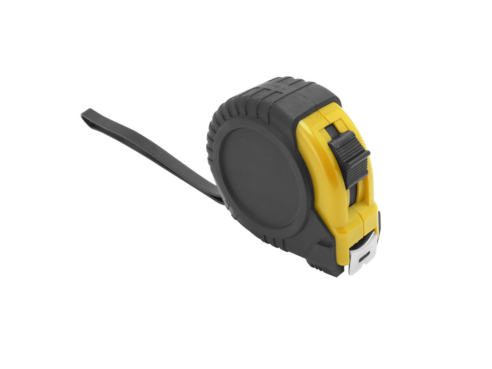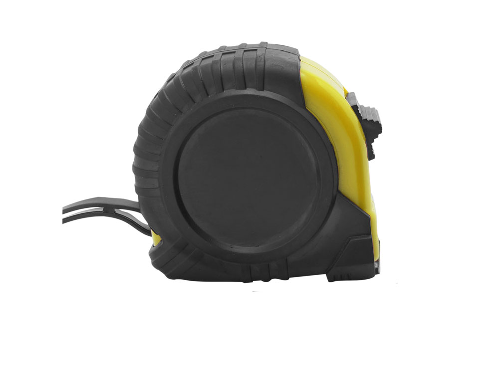 5-метровая рулетка с фиксирующим механизмом. Цветной прорезиненный корпус с резиновым чехлом, металлический зажим и ремешок для переноски.